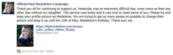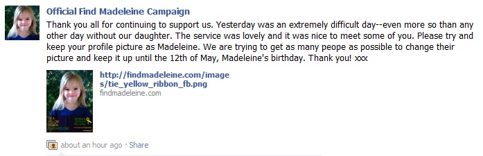 Note: This site does not belong to the McCanns. It belongs to Pamalam. If you wish to contact the McCanns directly, please use the contact/email details campaign@findmadeleine.com