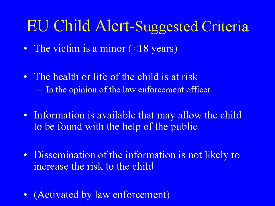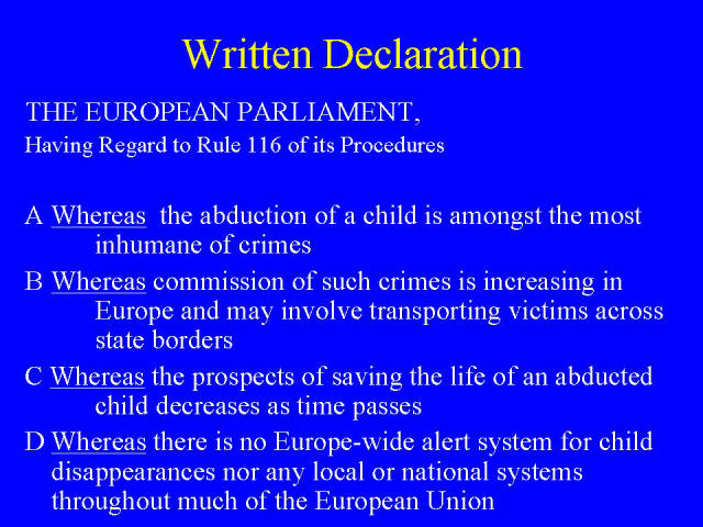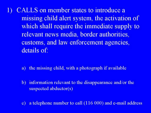 promote the child alert system PowerPoint presentation declaration 10/04/2008 [