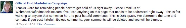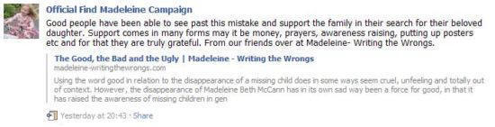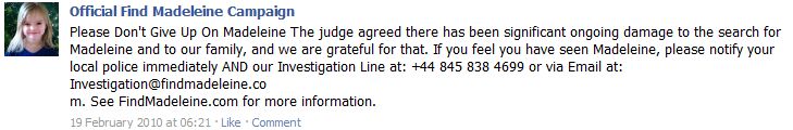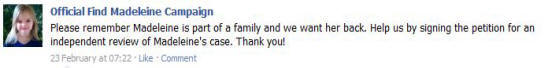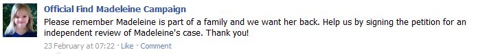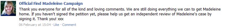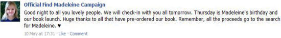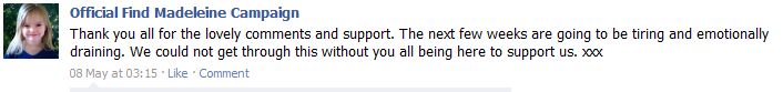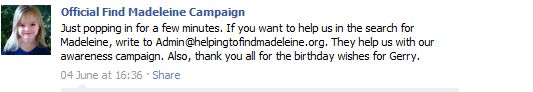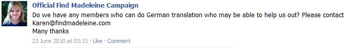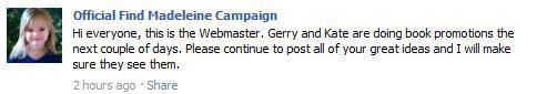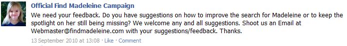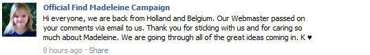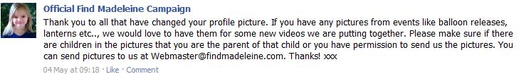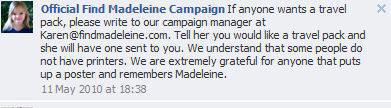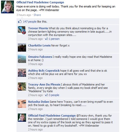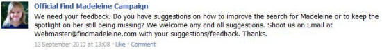 Write to our Campaign Coordinator at campaign@findmadeleine.com.
