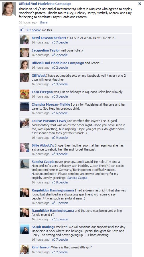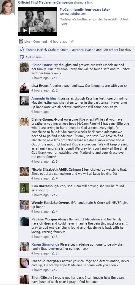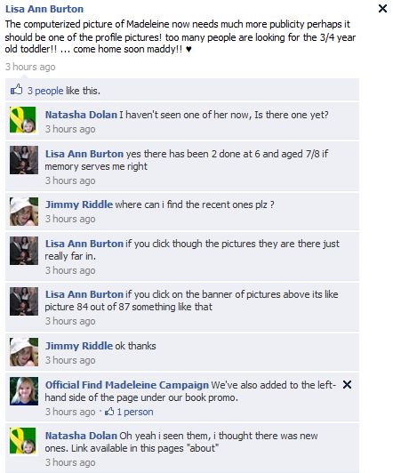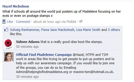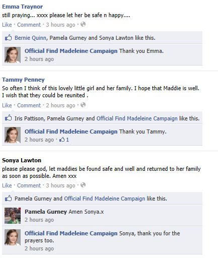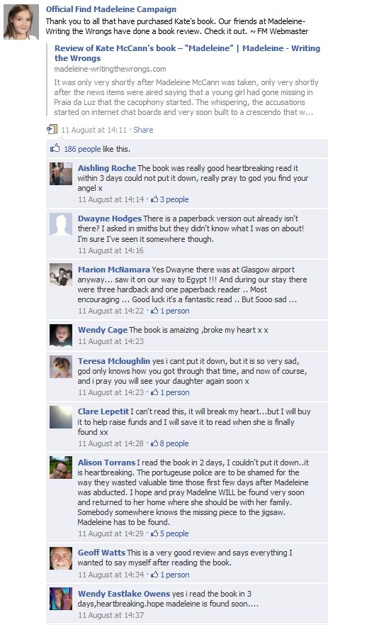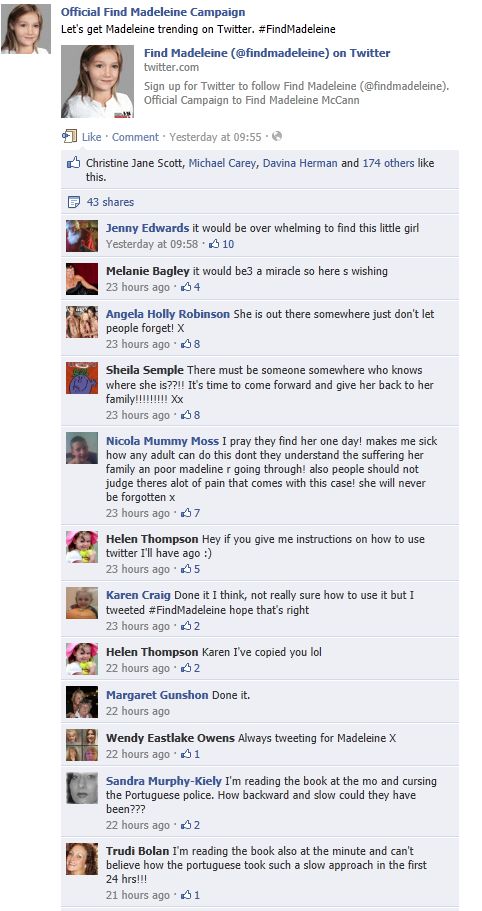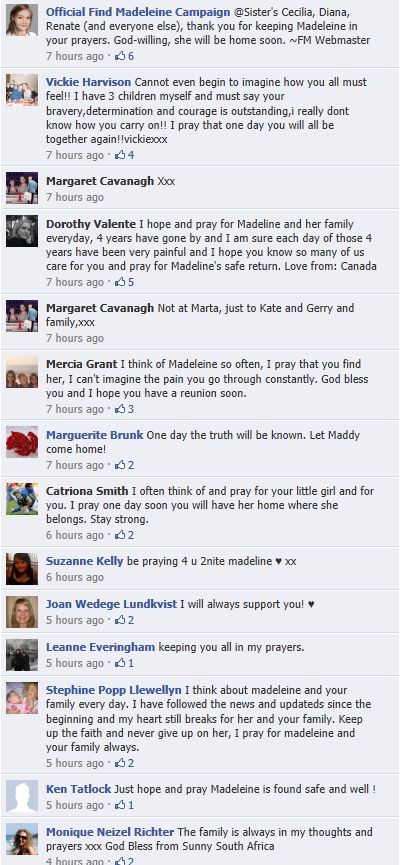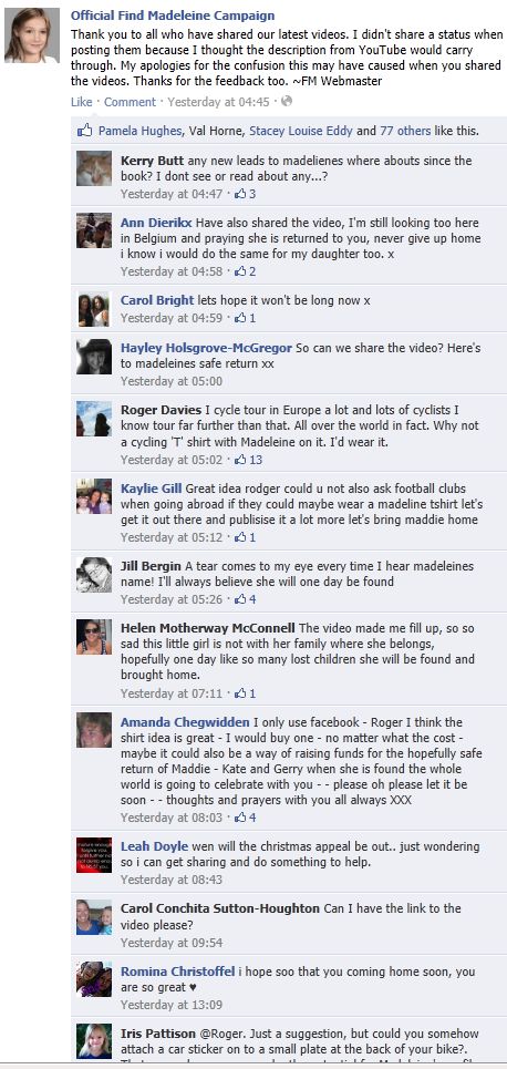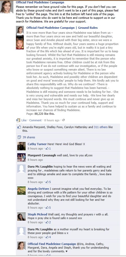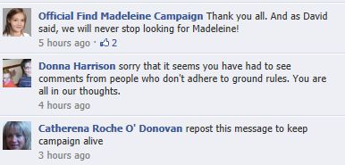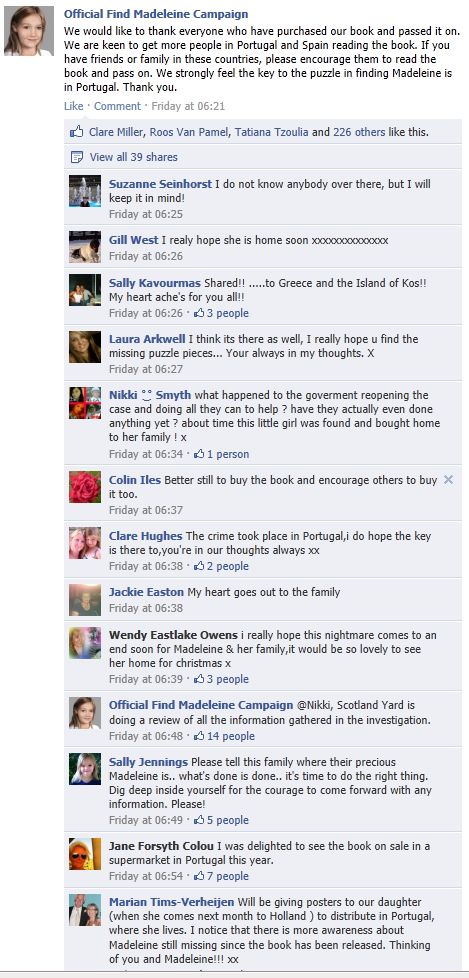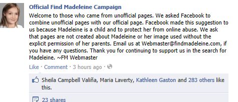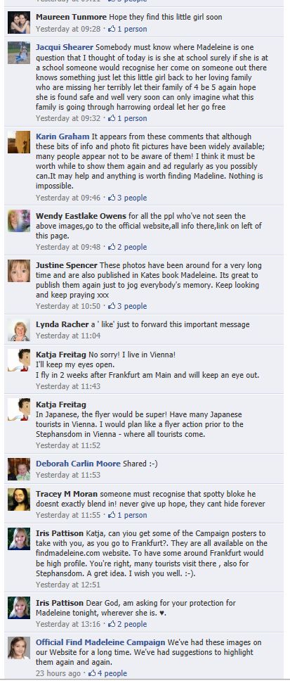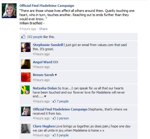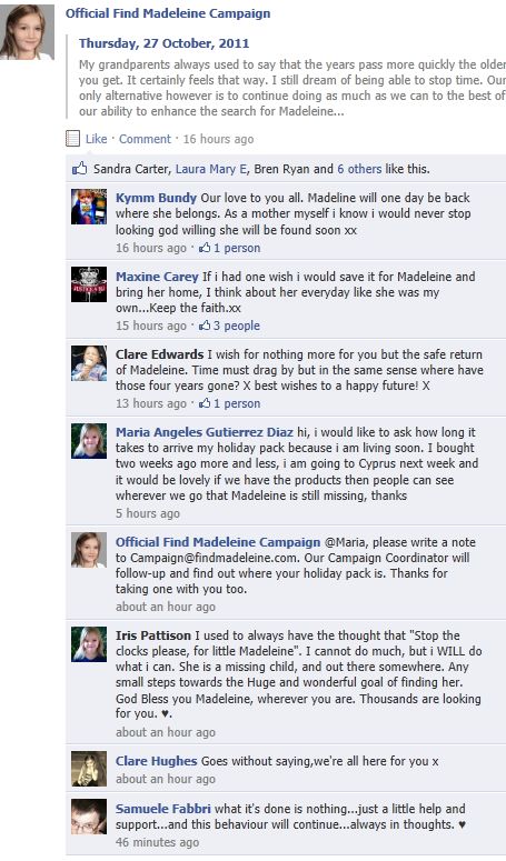 find Madeleine Face book updates