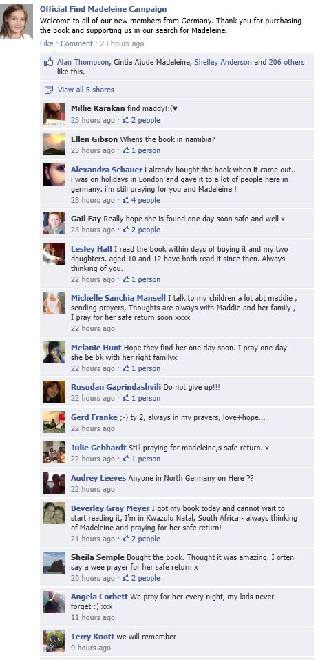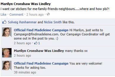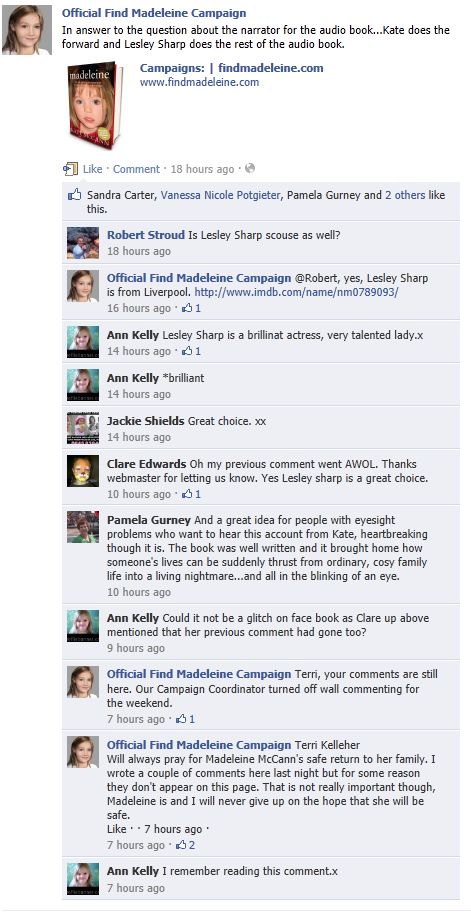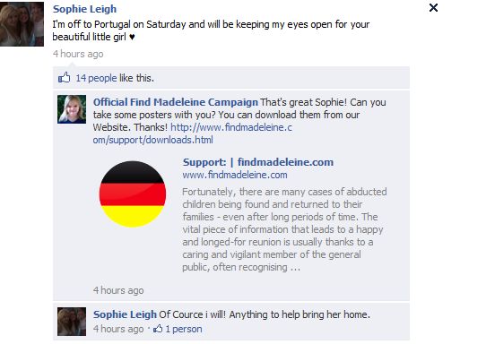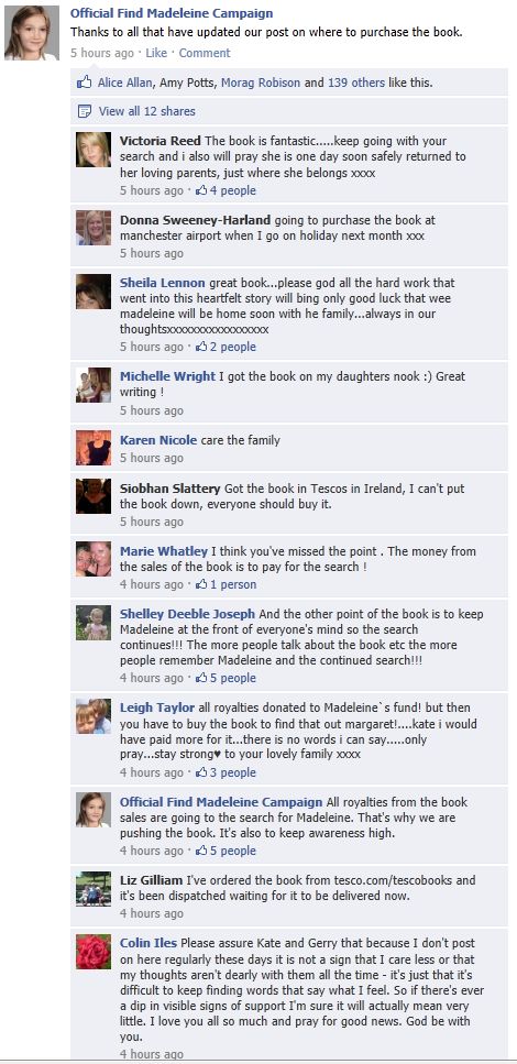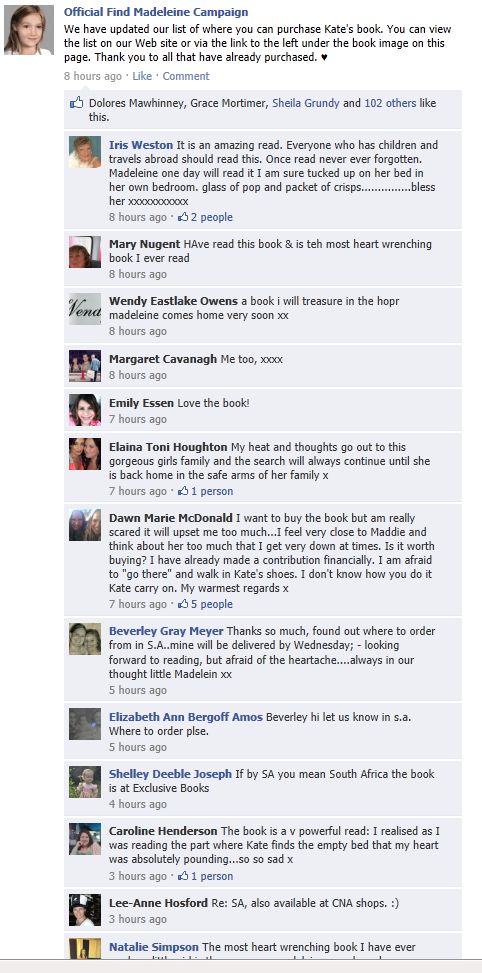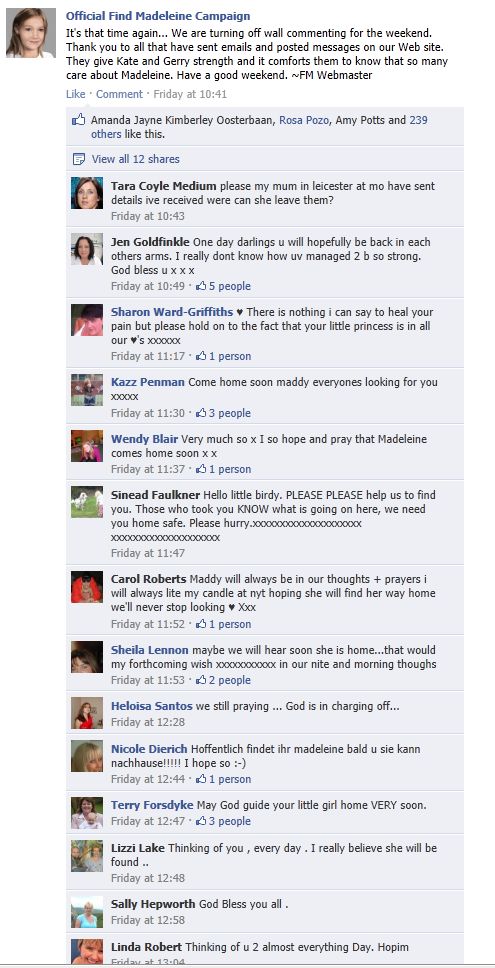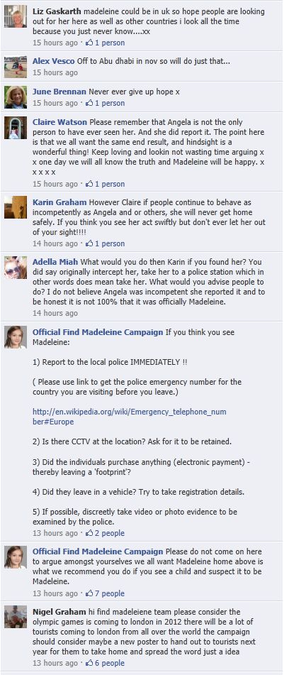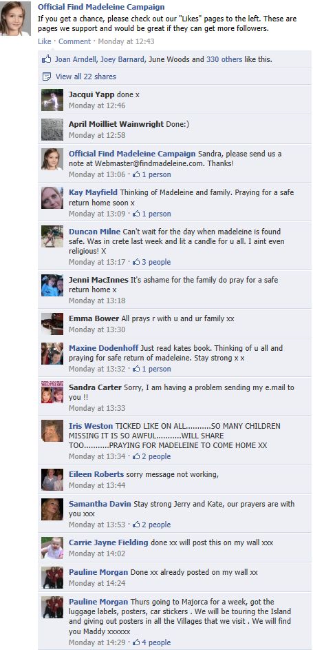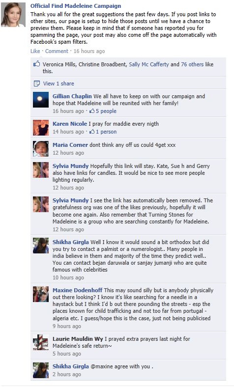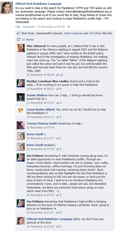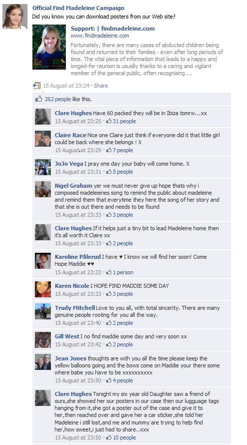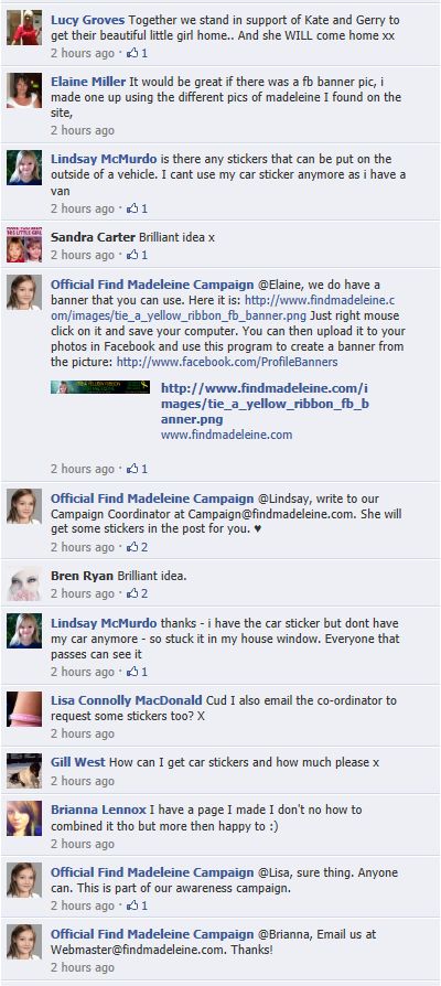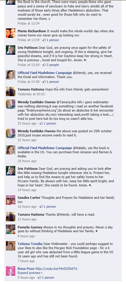 find Madeleine Face book updates