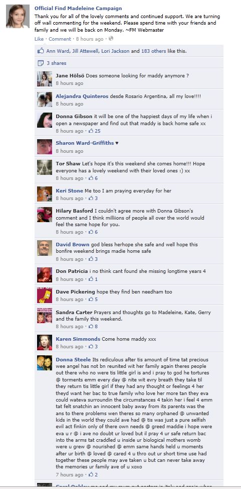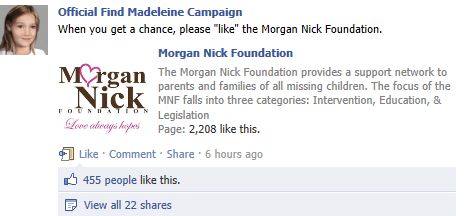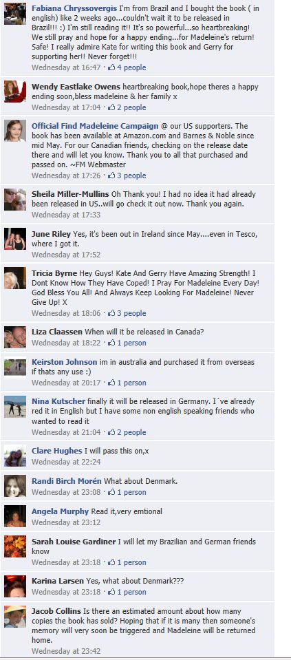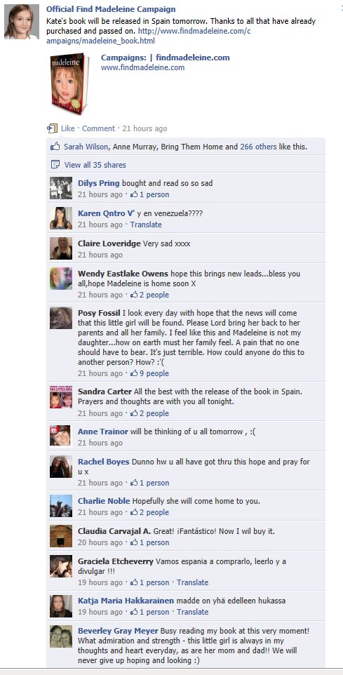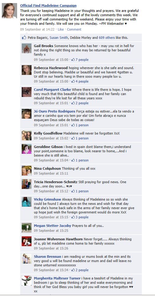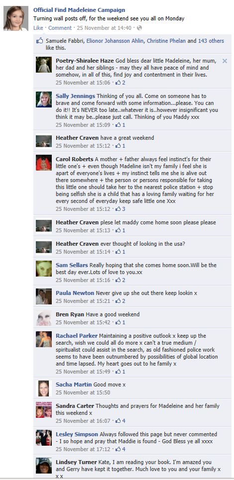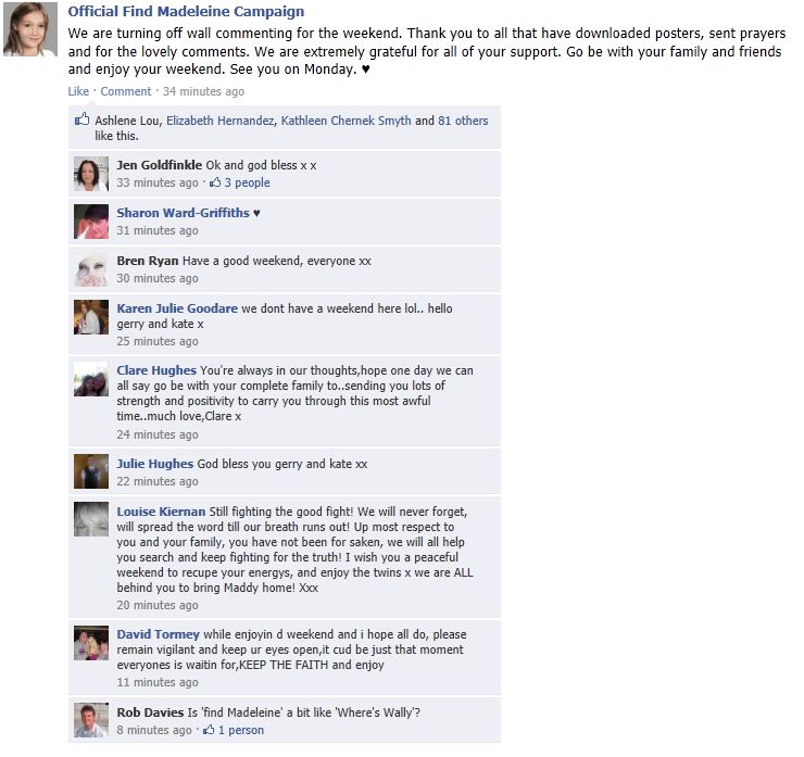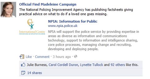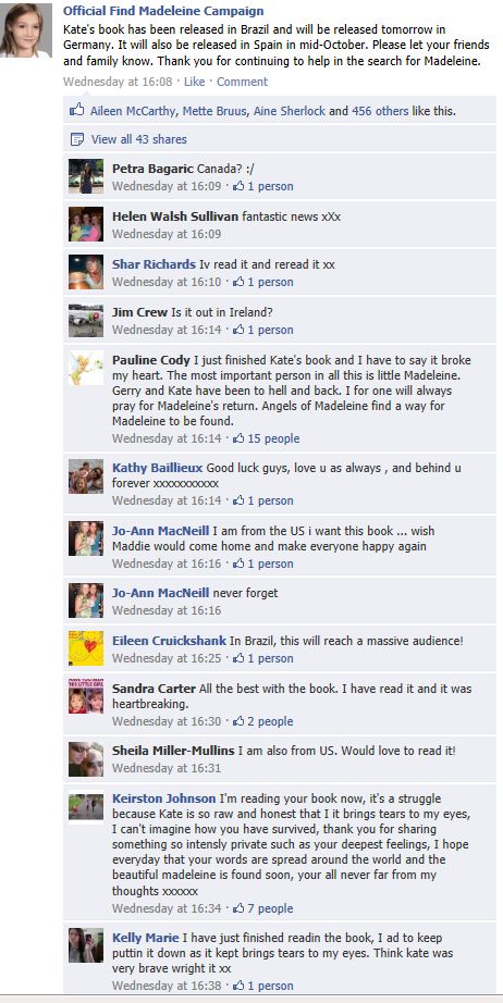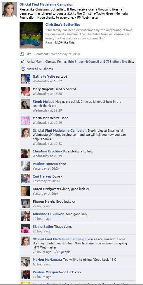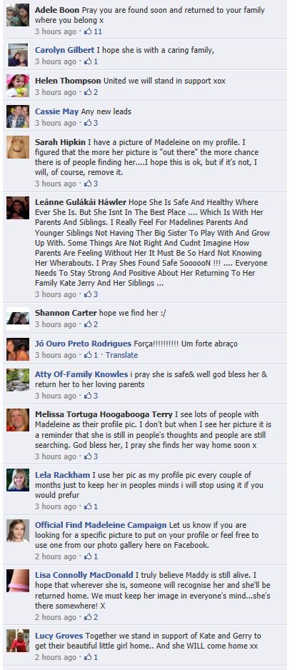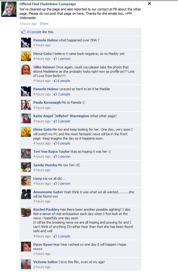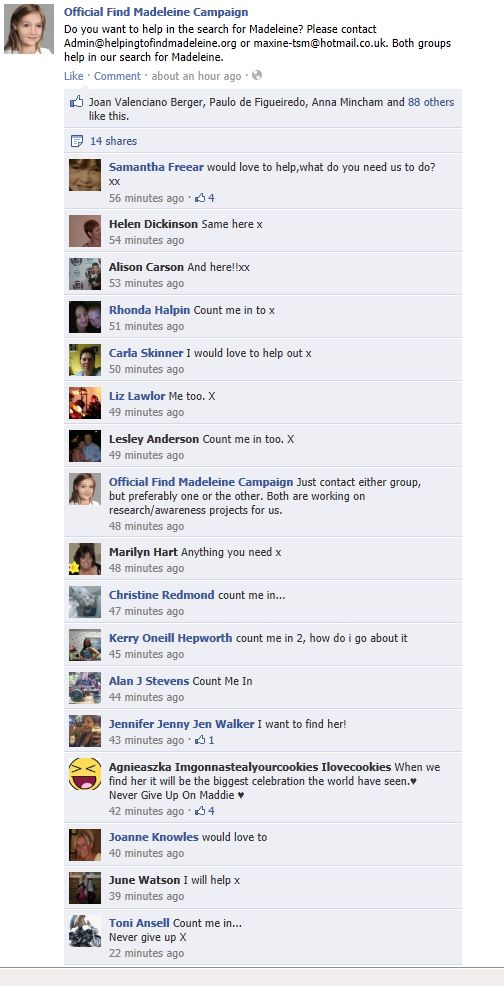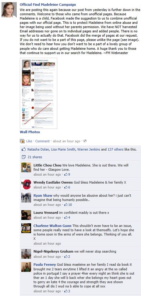 find Madeleine Face book updates