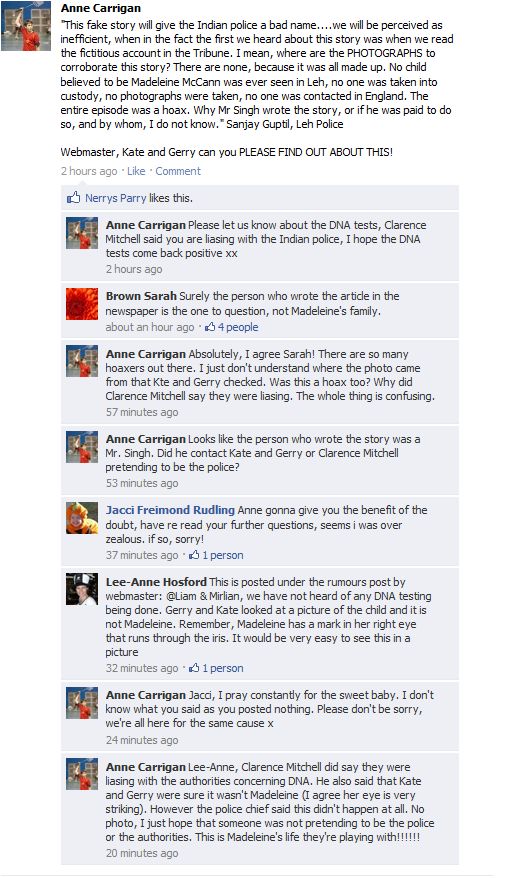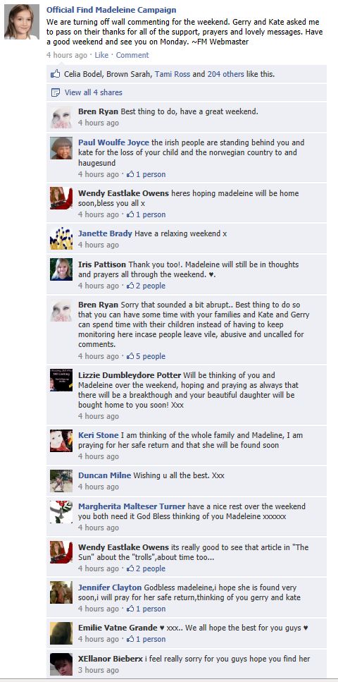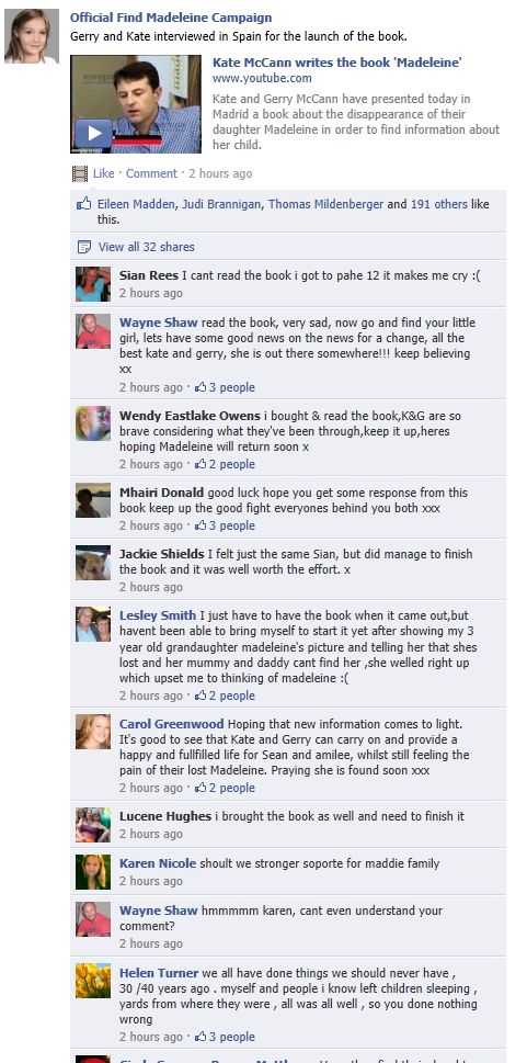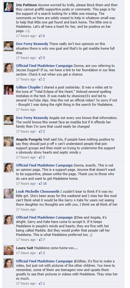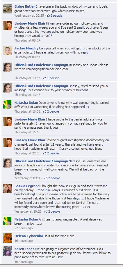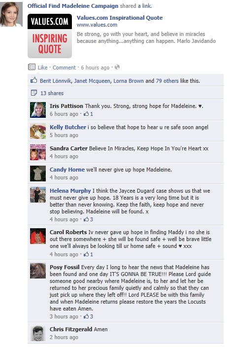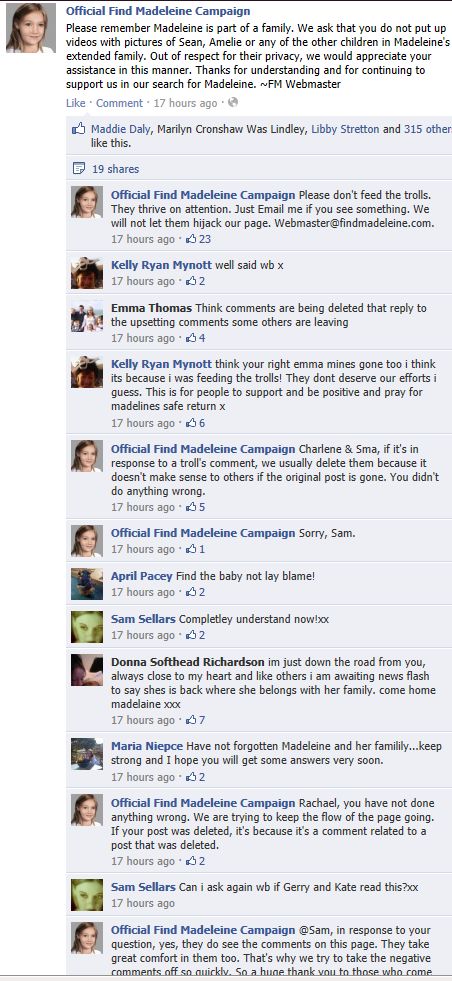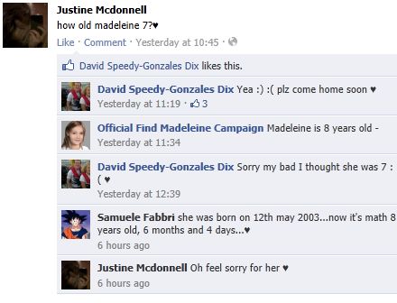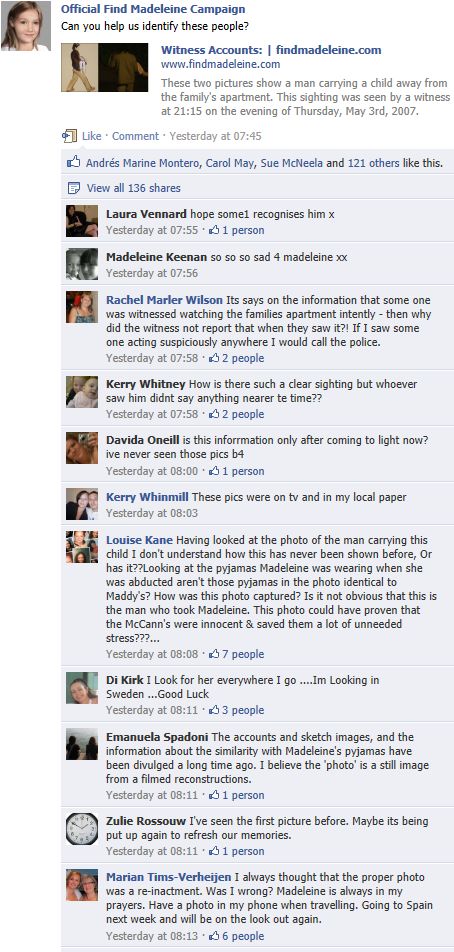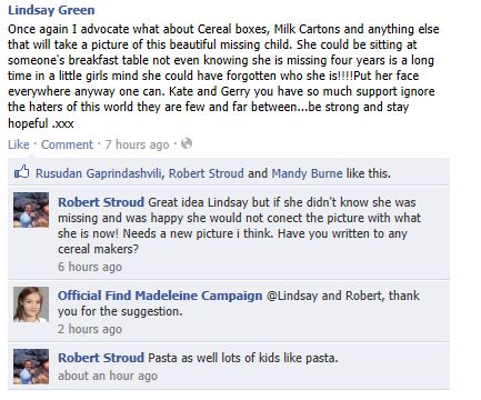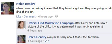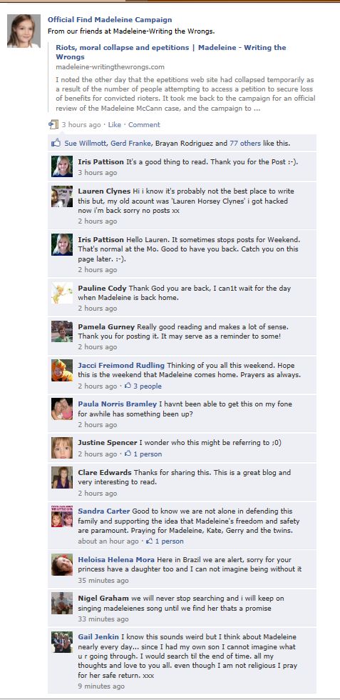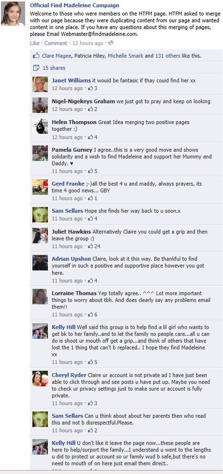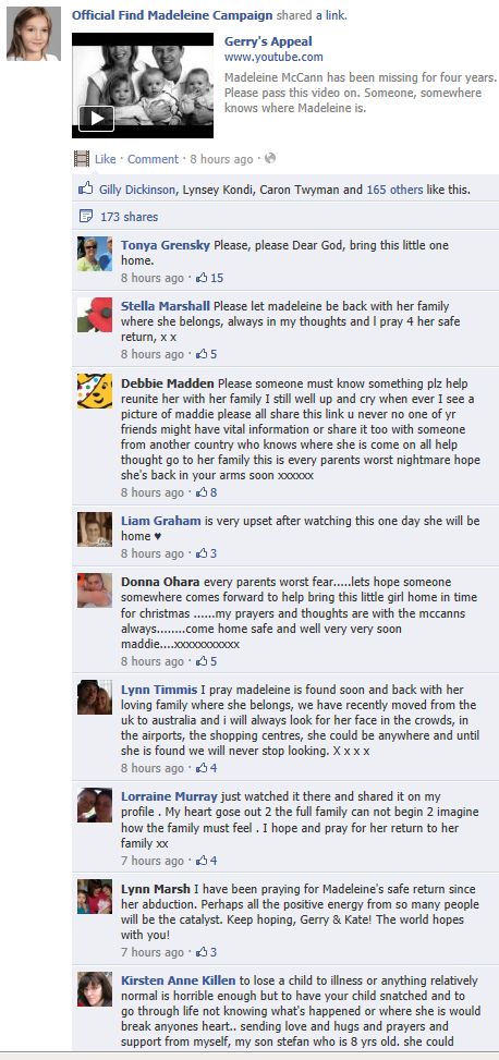 find Madeleine Face book updates