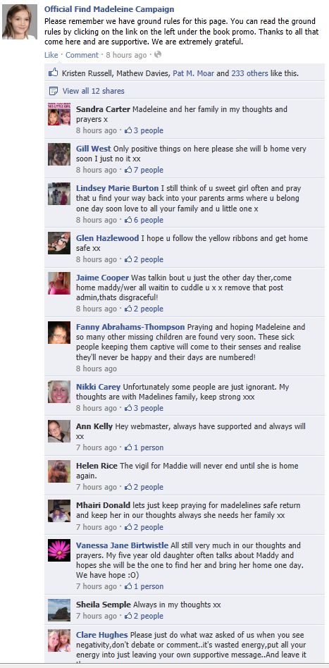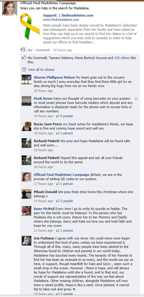 anyone who is interested in Justice for Madeleine Beth McCann. Many