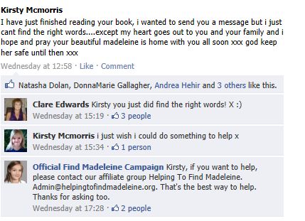 you wish to contact the McCanns directly, please use