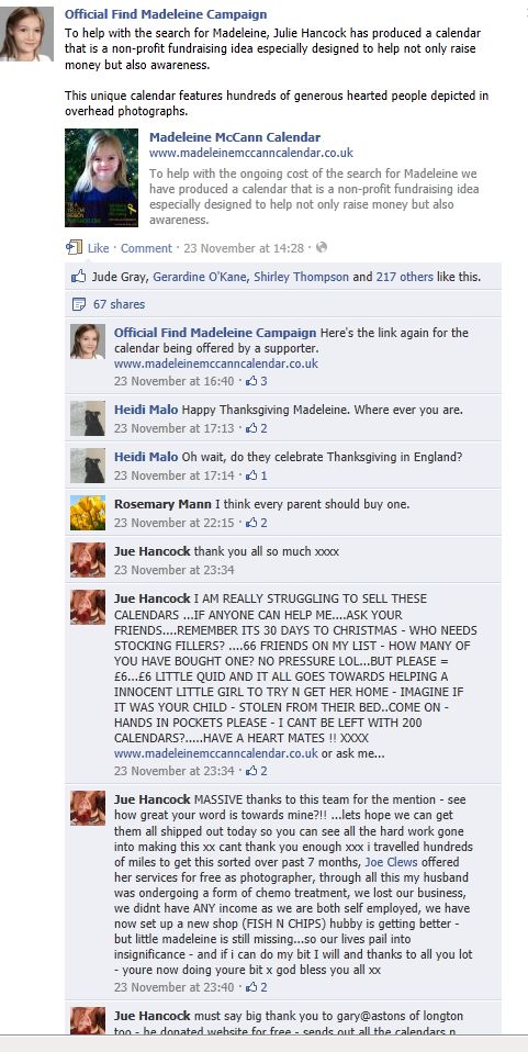 Official Find Madeleine Campaign Here's the link again for the calendar being offered by a supporter.