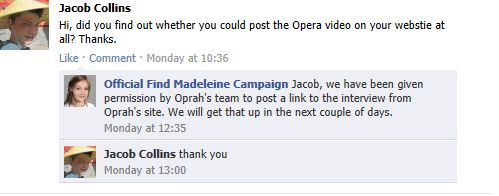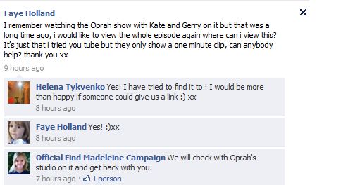 Official Find Madeleine Campaign We will check with Oprah's studio on it and get back with you.