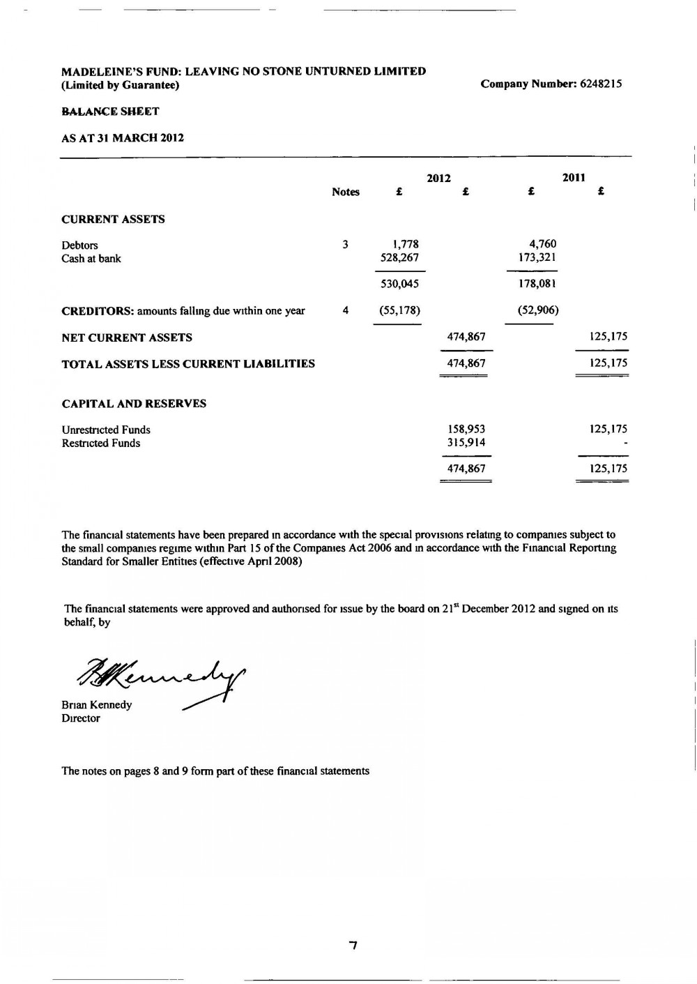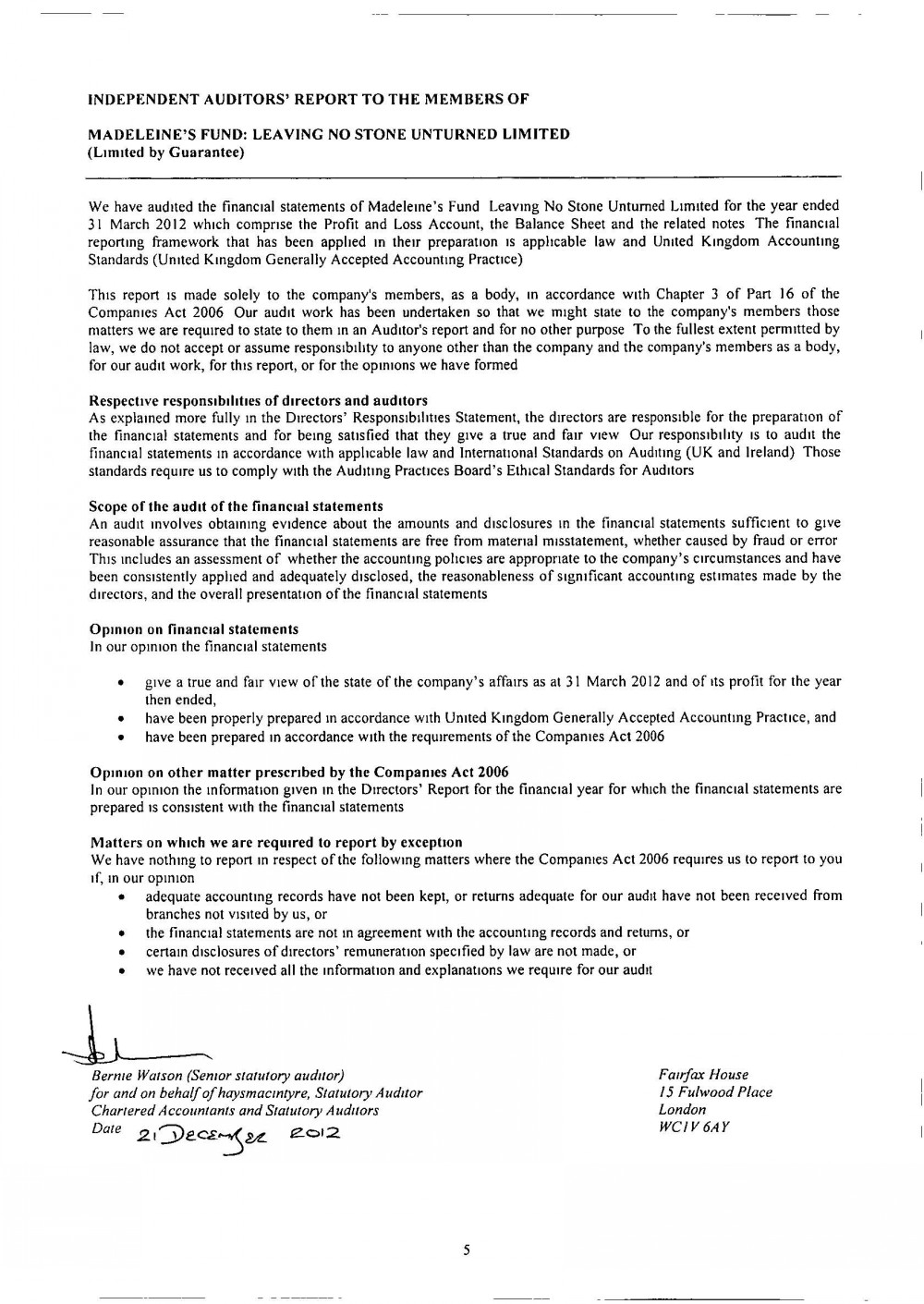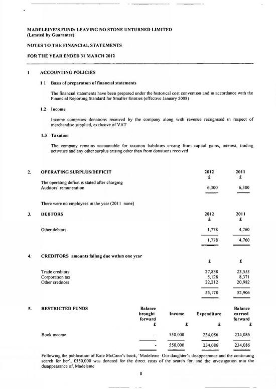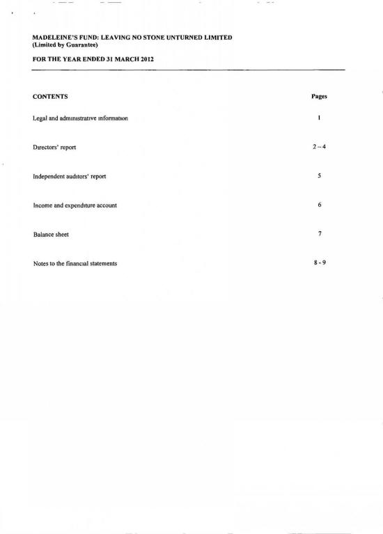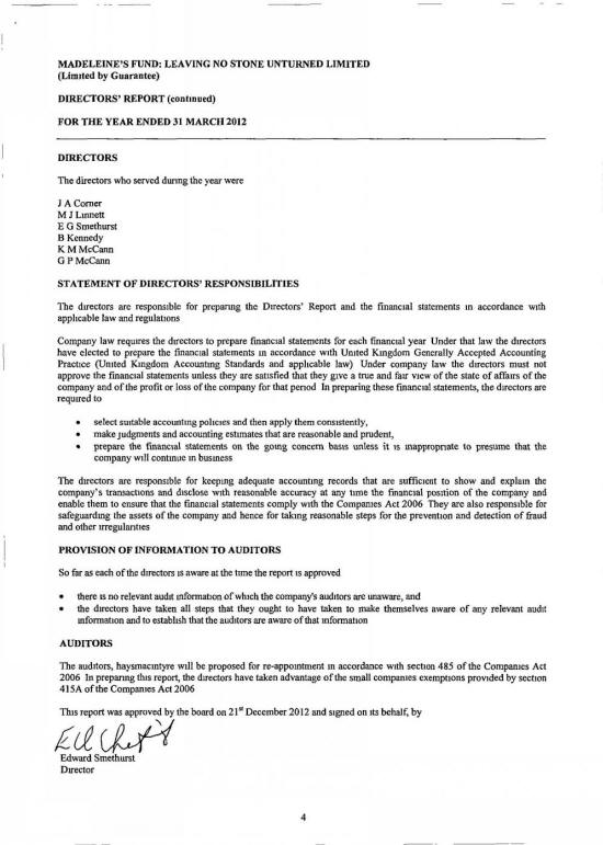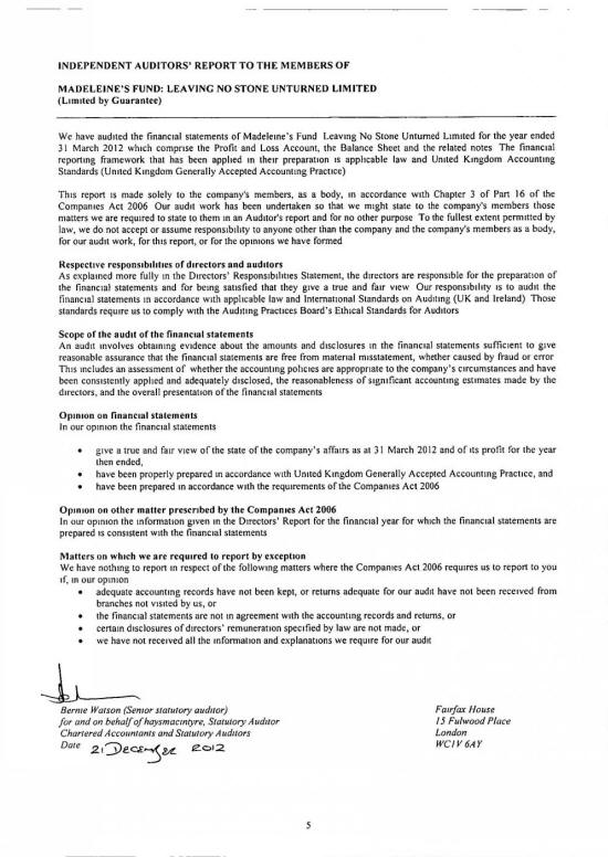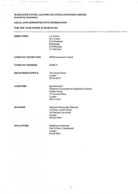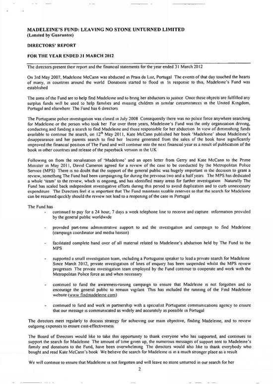 MADELEINE FUND ACCOUNTS FOR 31 MARCH 2012 |