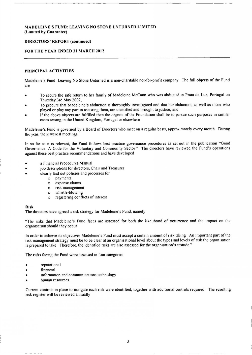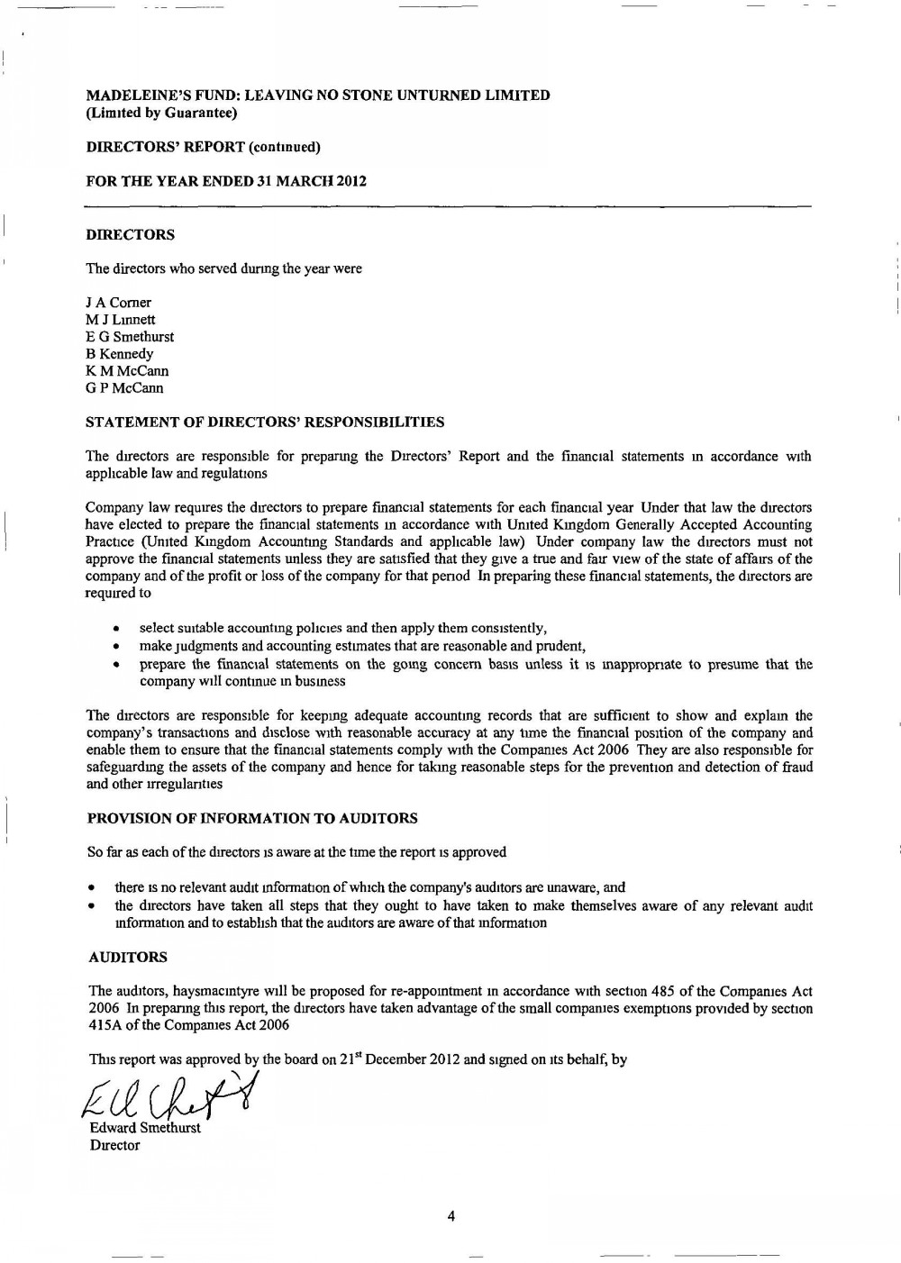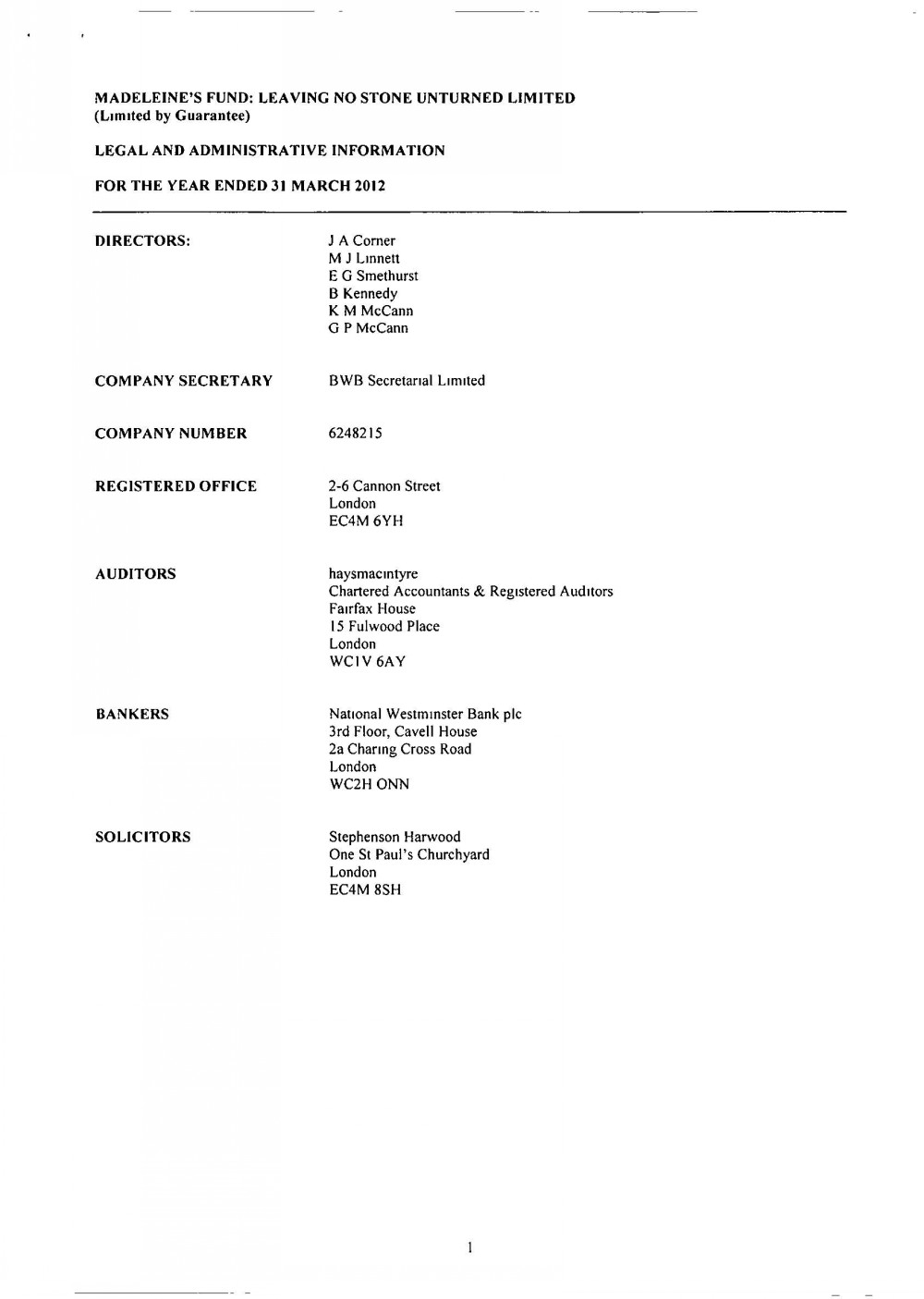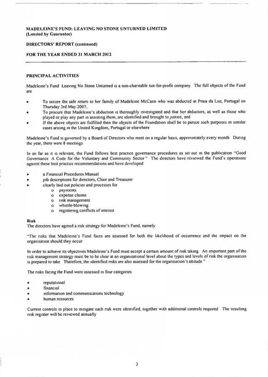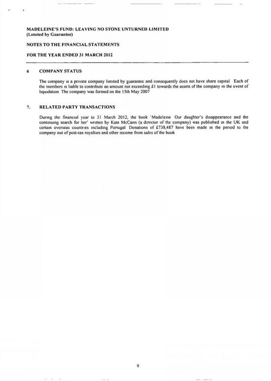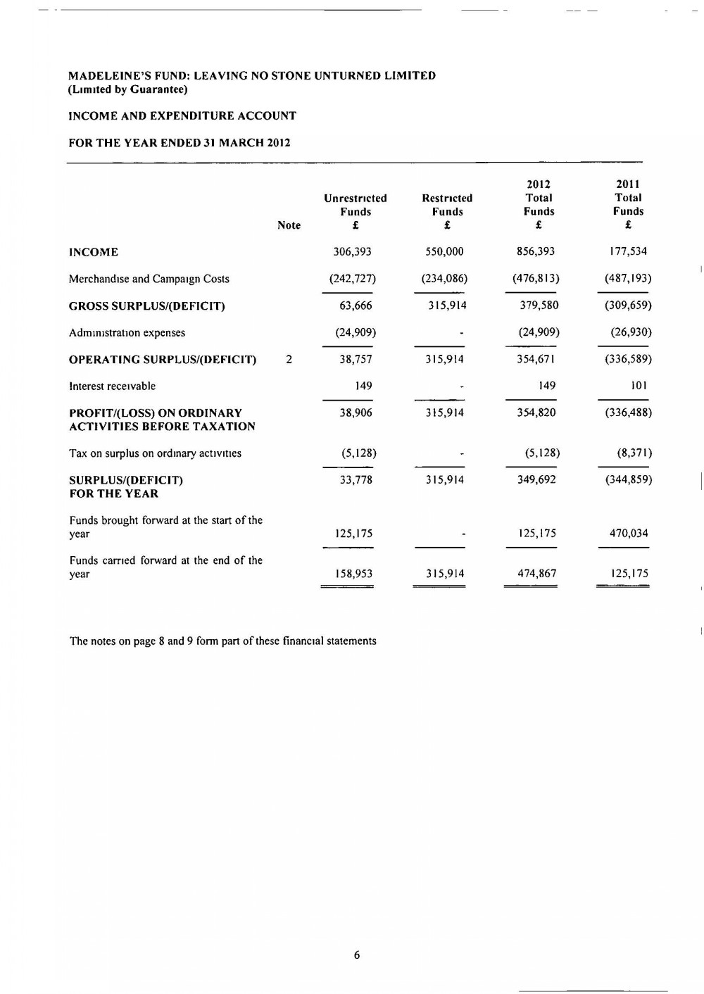 MADELEINE FUND ACCOUNTS FOR 31 MARCH 2012 |
