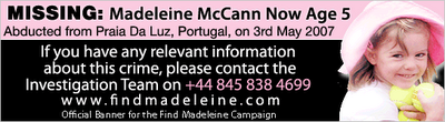 | The purpose of this site is for information and a record of Gerry McCann's Blog Archives. As most people will appreciate GM deleted all past blogs from the official website. Hopefully this Archive will be helpful to anyone who is interested in Justice for Madeleine Beth McCann. Many Thanks, Pamalam | ||||||||||||||||||||||||||||||||||||||||