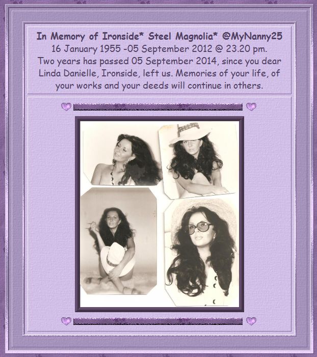 In Memory of Ironside* Steel Magnolia* @MyNanny25 16 January 1955 -05 September 2012 @ 23.20 pm