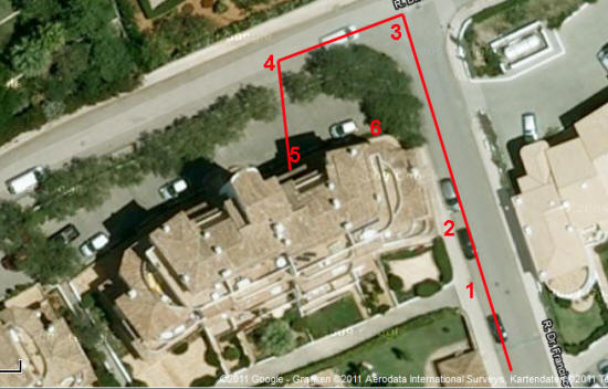 1 = little path separating apartments from Tapas