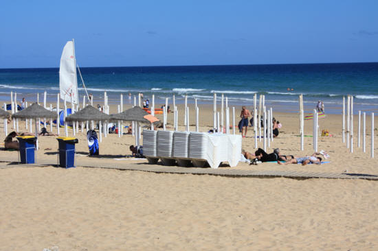 The stack of sunbeds is still at the same spot |