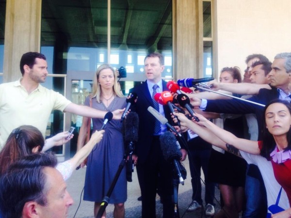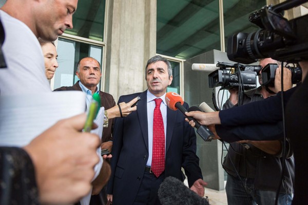 Photo By Anne Guedes 13-09-2013  Gonçalo Amaral and lawyer speak to the Press outside the Court.