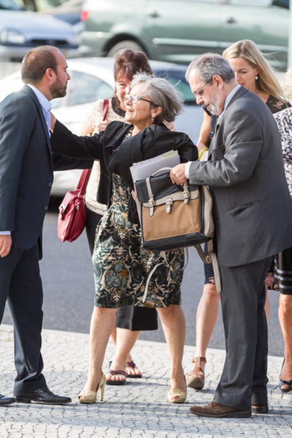 Photo: Anne Guedes Defence advocates Dra Fatima Esteves (G&P), Dr Henrique Costa Pinto (VCFilmes) and Dr Santos de Oliveira (GA) emerge from the Palace of justice at the end of day 10.