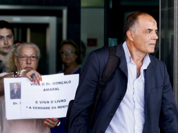Photo: Anne Guedes Dr Gonçalo Amaral and lawyer Dr Santos de Oliveira pictured outside the Palace of Justice earlier today