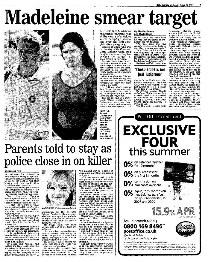 Madeleine's disappearance - the PJ have doubts, 08 May 2007