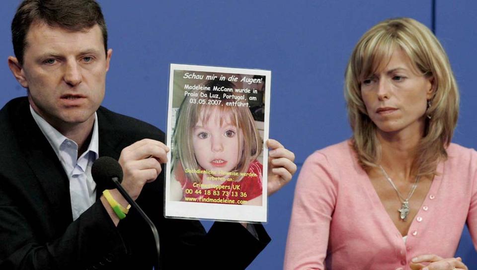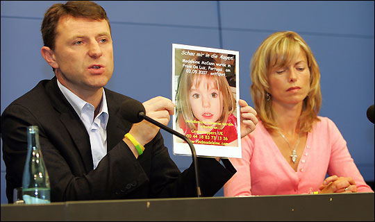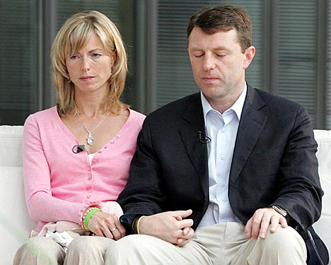 of missing British girl Madeleine McCann, hold hands before a news conference in Berlin in June 2007. Photograph: Alex Grimm/Reuters