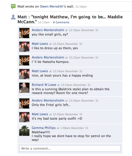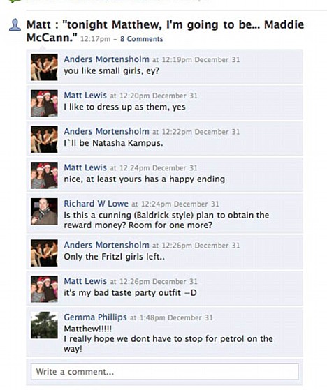 On his Facebook page Lewis has divulged the sickening details of dressing up for a party as Madeleine McCann. What sort