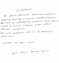 According to Leonor's lawyer, the confession – that was written "by the hand" of Joao Cipriano himself - corroborates