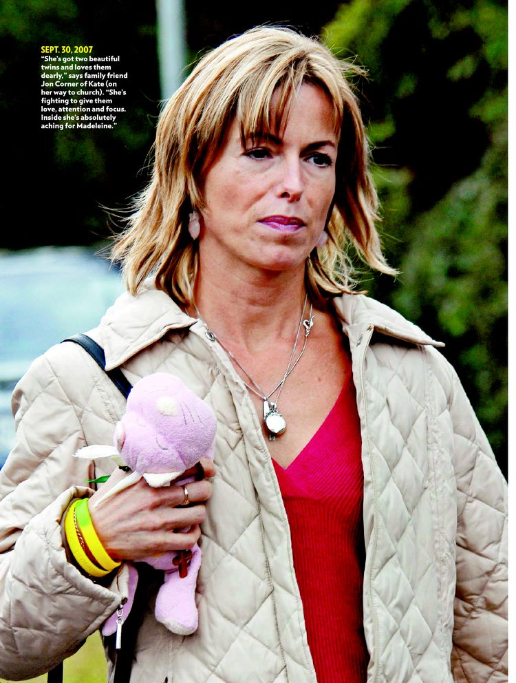 up no sign of the child. Early on, a distraught Kate appeared before news crews clutching Madeleine's pink stuffed toy, looking