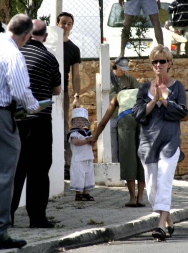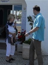 Gerry in Praia da Luz with the child playing 'Maddie'