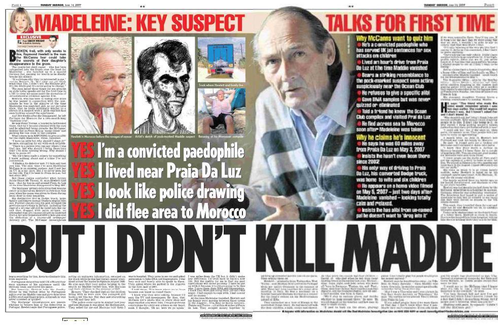 Maddie suspect Raymond Hewlett admits he doesn't have an alibi for night she disappeared Sunday Mirror