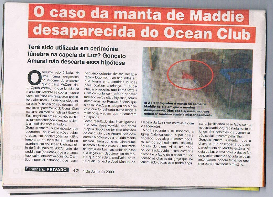 Maddie's blanket missing from the Ocean Club Semanário Privado