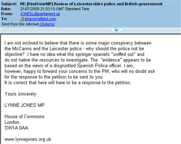 MP responds to complaint about the role of Leicestershire police in the Madeleine McCann case Abuse of Power blogspot