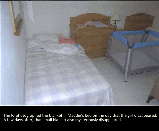 who had taken her would cover her up with her little blanket (but the blanket was on the bed after Maddie, supposedly, disappeared!!!).