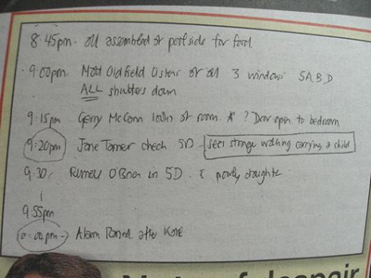 The following timelines are based primarily on the information provided by Kate and Gerry McCann, and