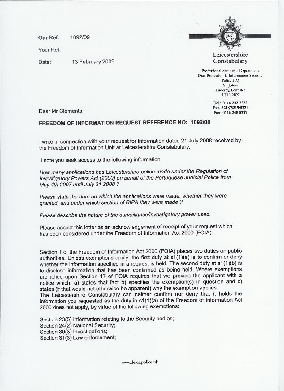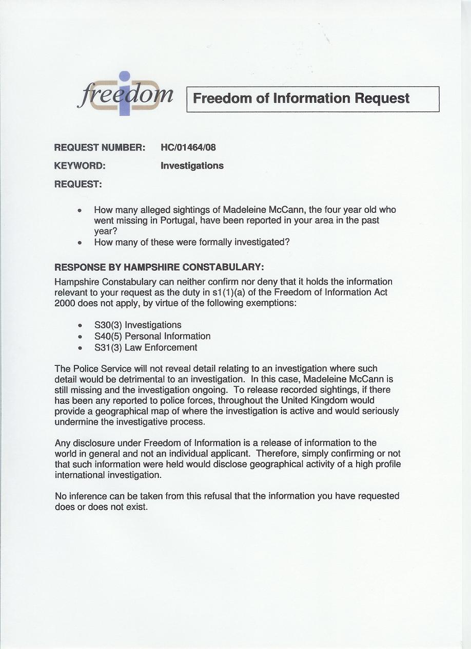 /future investigations. Release of the remit and the other details could inform suspects of the progress of the review and
