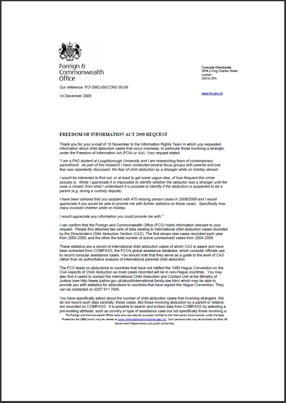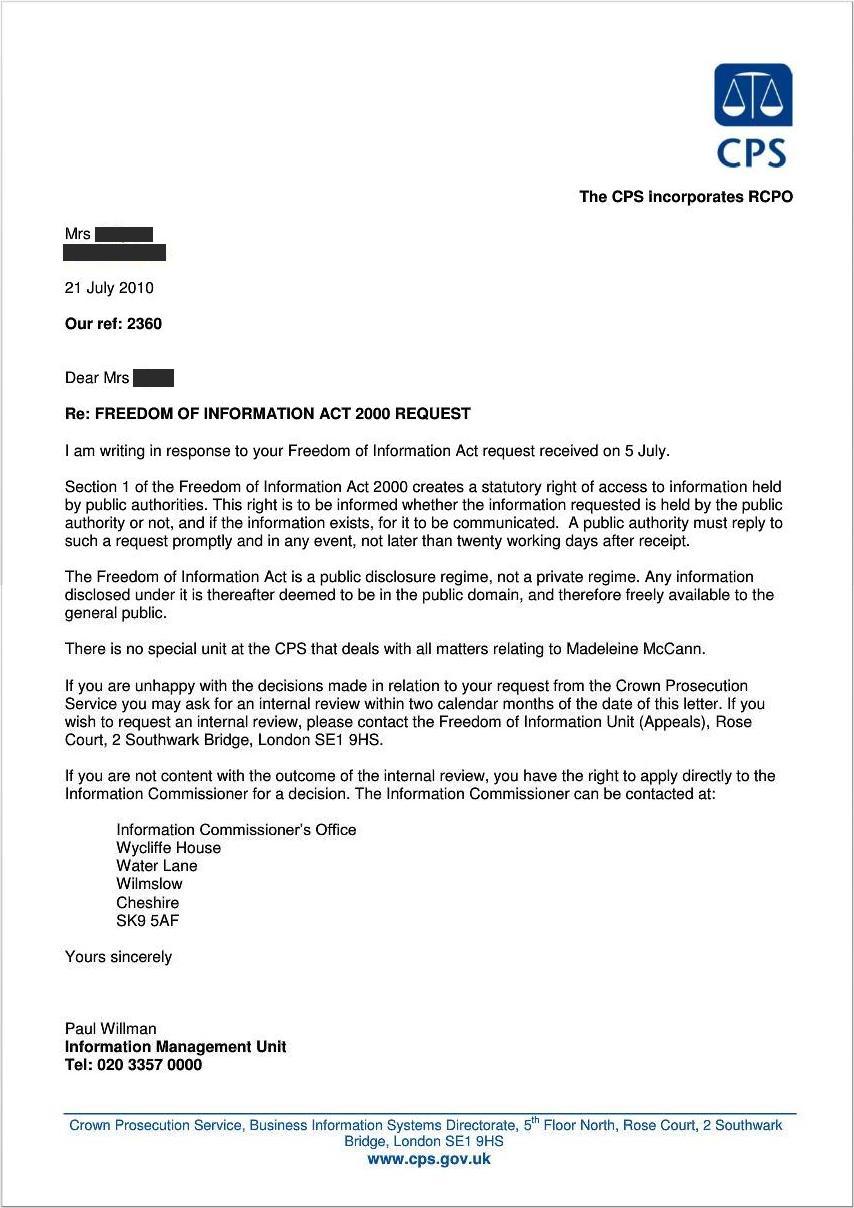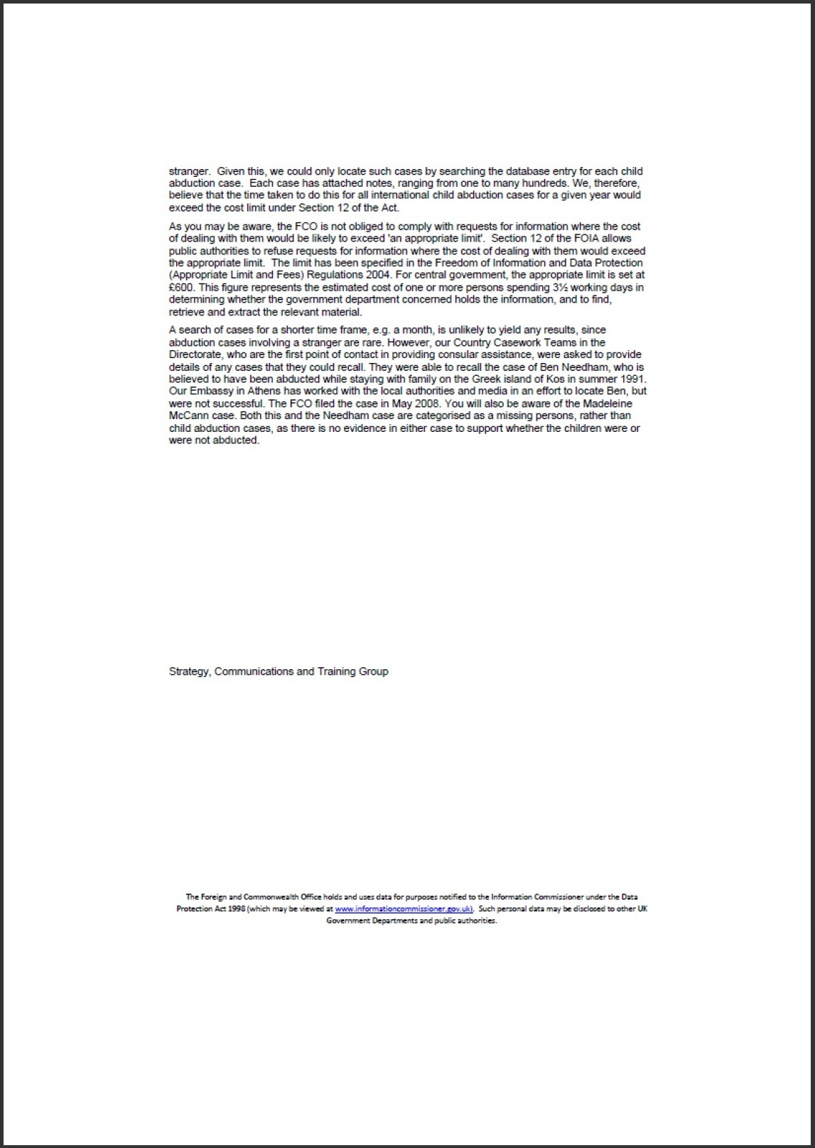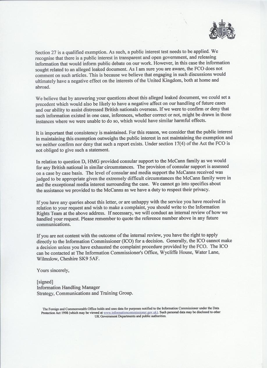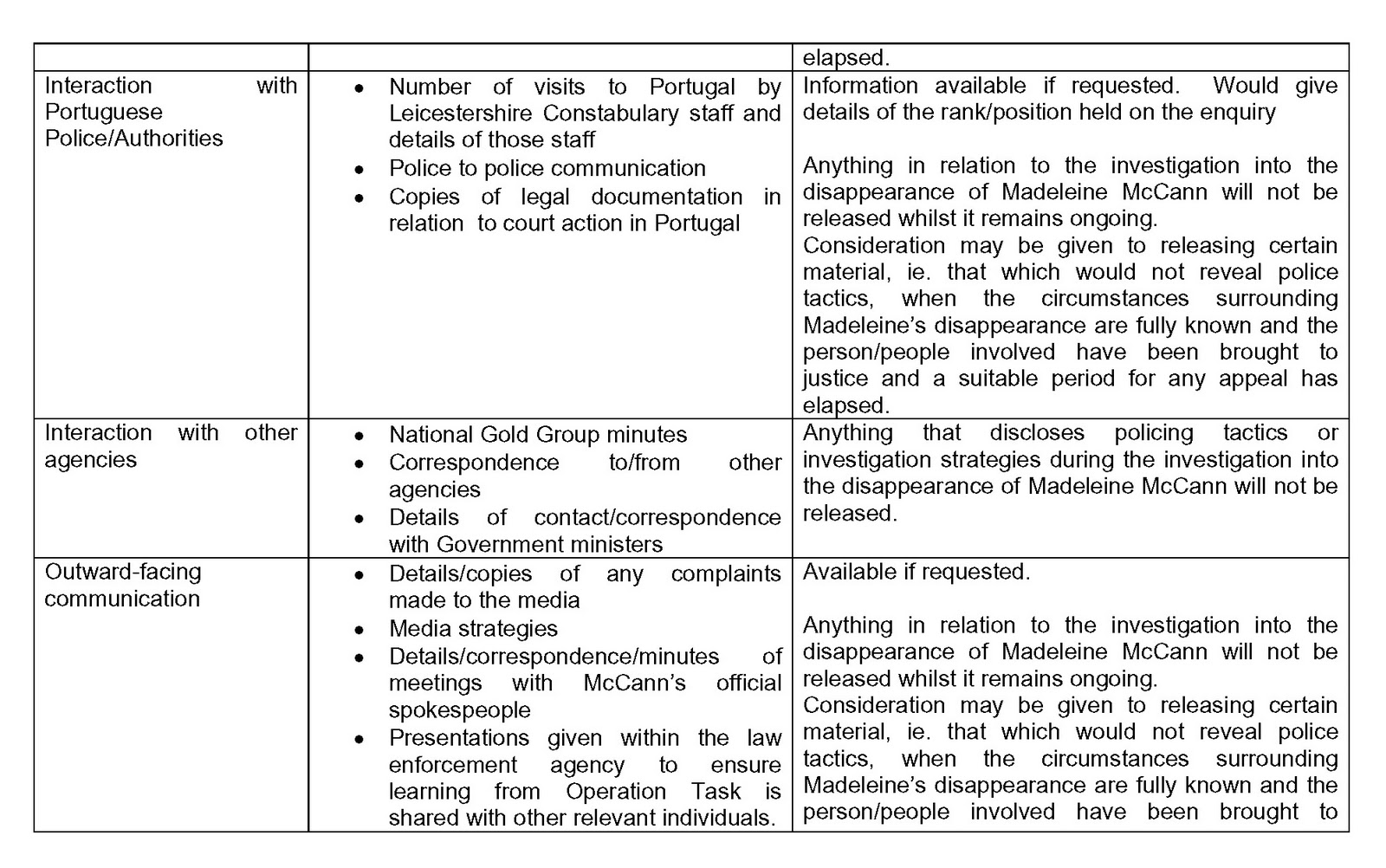 not outweigh disclosing information relating to your request for information about the remit of The Madeleine McCann Review.
