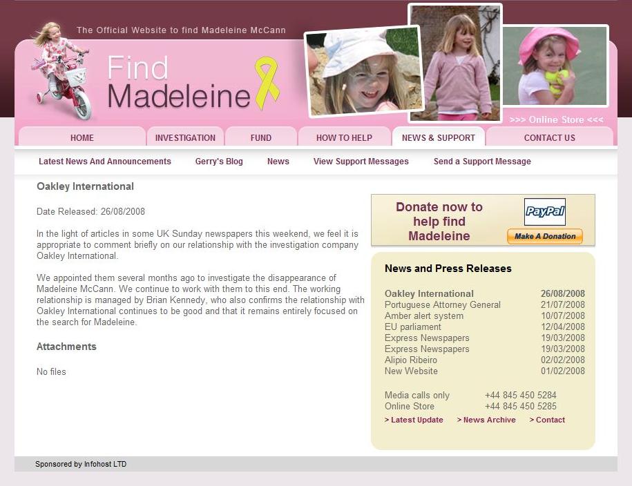 McCanns hire crack team of ex-FBI agents to find Madeleine, 13 August 2008 |