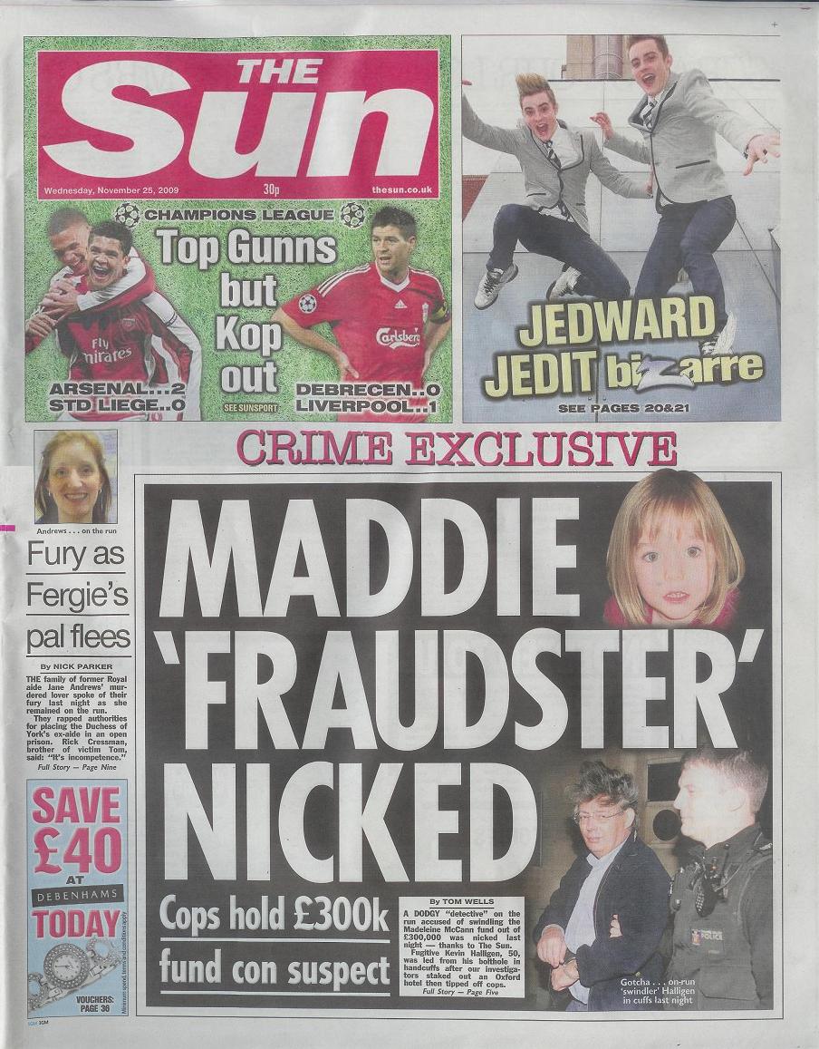 | The Sun, front page, 25 November 2009 |