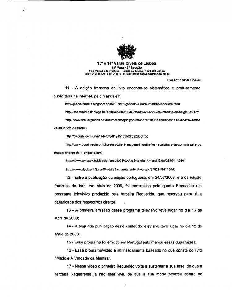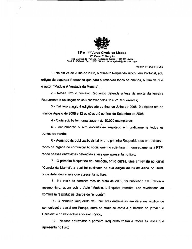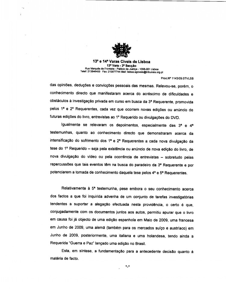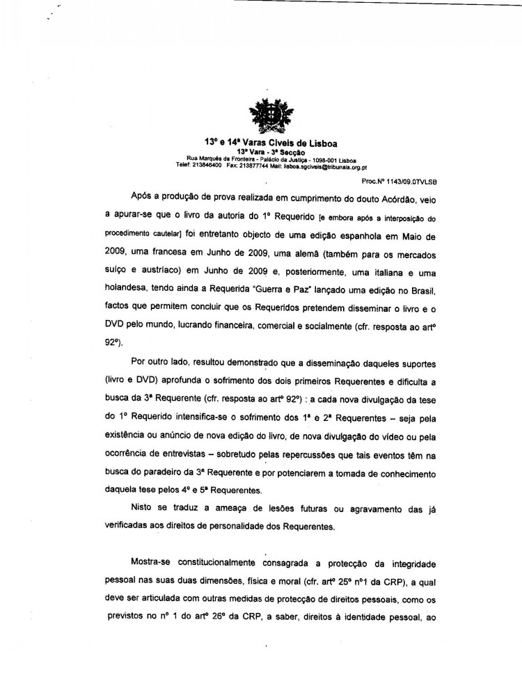 This page contains the actual Civil Court decision to grant an injunction against Gonçalo Amaral's