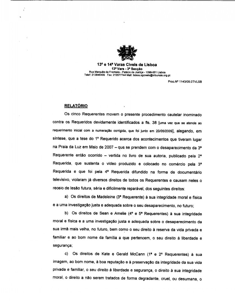 This is a translation of the text of the Civil Court ruling that granted the temporary injunction on Gonçalo