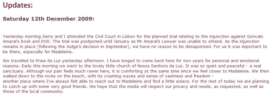 On the site dedicated to the search for their daughter, 'findmadeleine.com',