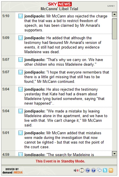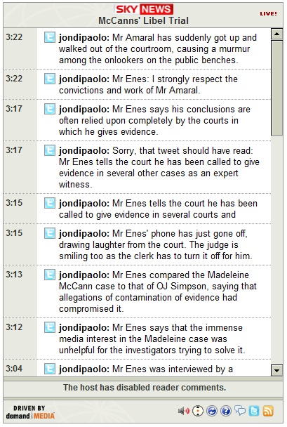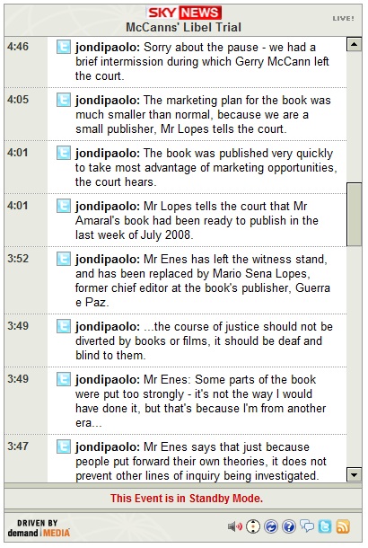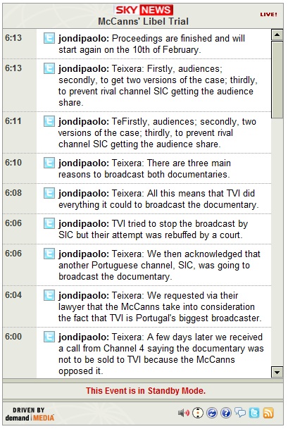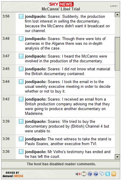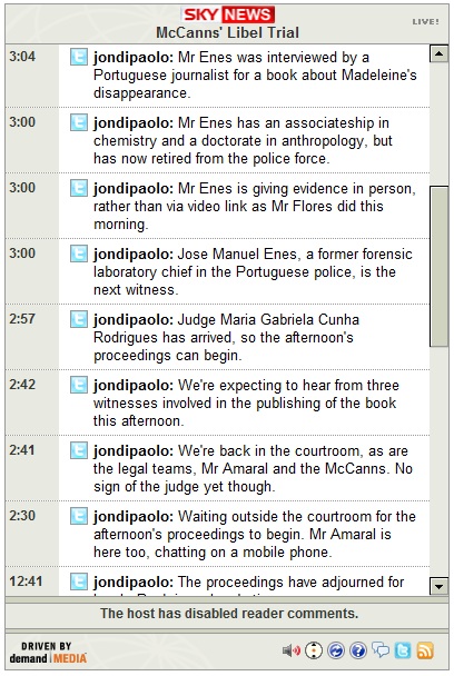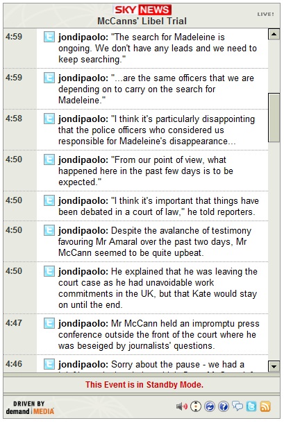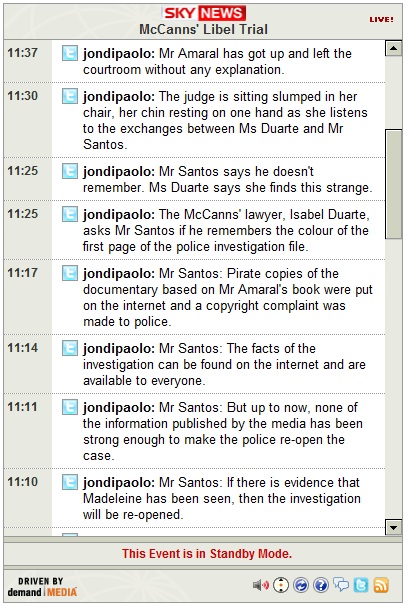 10:47-- Mr Amaral's lawyer has said that the McCanns should take the stand in order to answer questions.