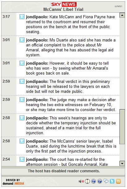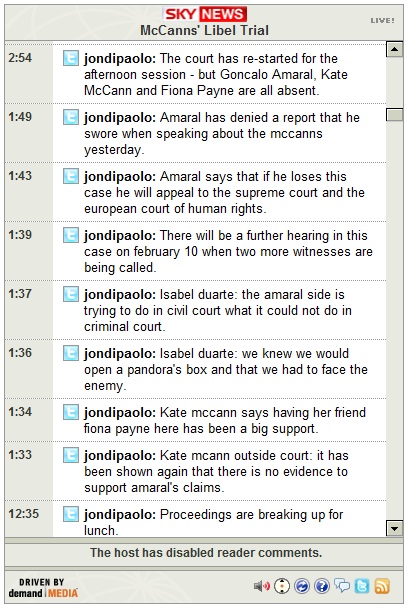 2:58-- The McCanns' senior lawyer, Isabel Duarte, said during the lunchtime break that this is only the first part of the