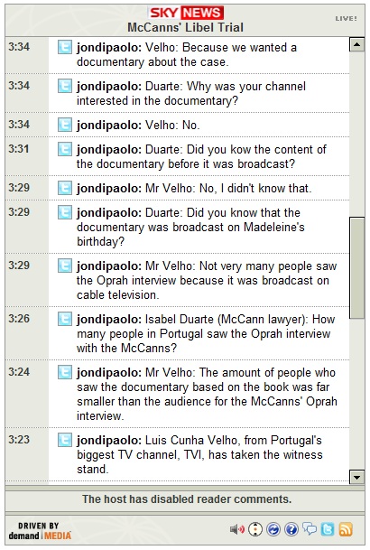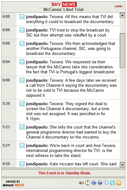 4:26-- The McCanns' lawyer, Isabel Duarte, is cross-examining Mr Soares on the subject of the channel's