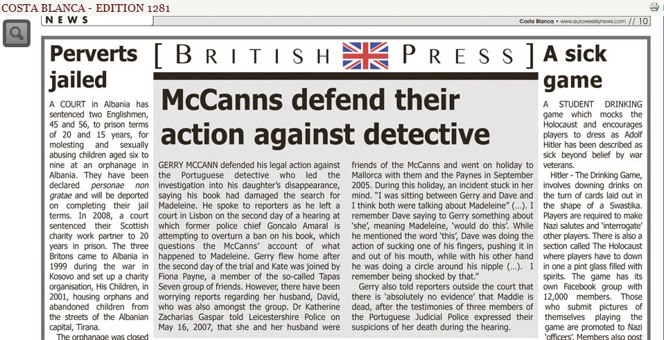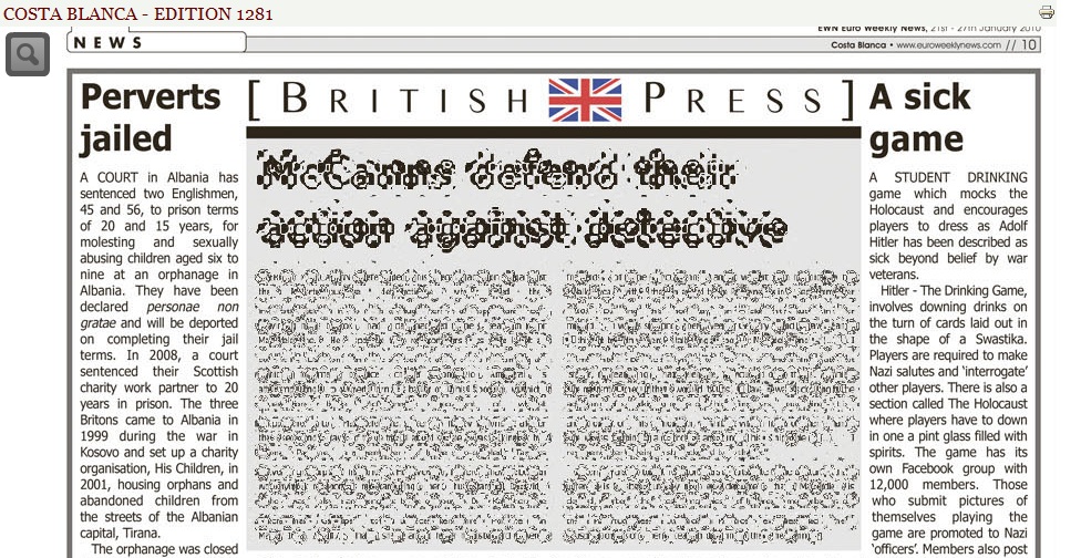 Legal fees 15 times libel payout in McCann PR libel case, 15 January 2010