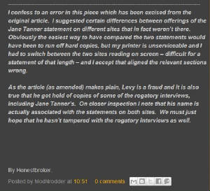 I suggested certain differences between offerings of the Jane Tanner statement on different sites that in fact weren't