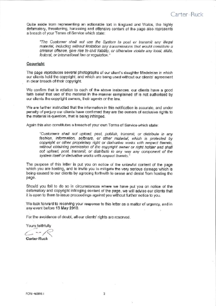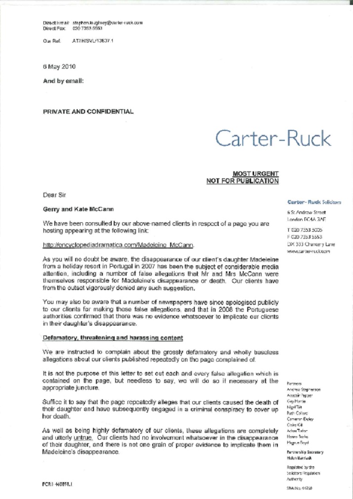 So we await then the impending presentation at the theatre of legal lunacy, Carter-Ruck no