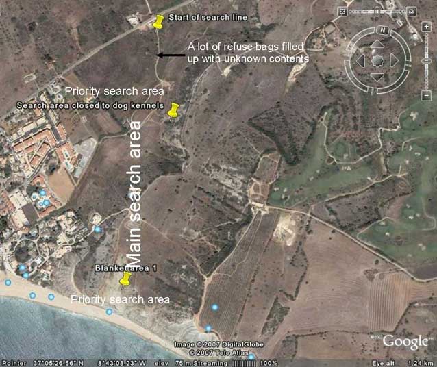 In July 2007, he is brought in by the McCanns to undertake searches around the Praia da Luz area.