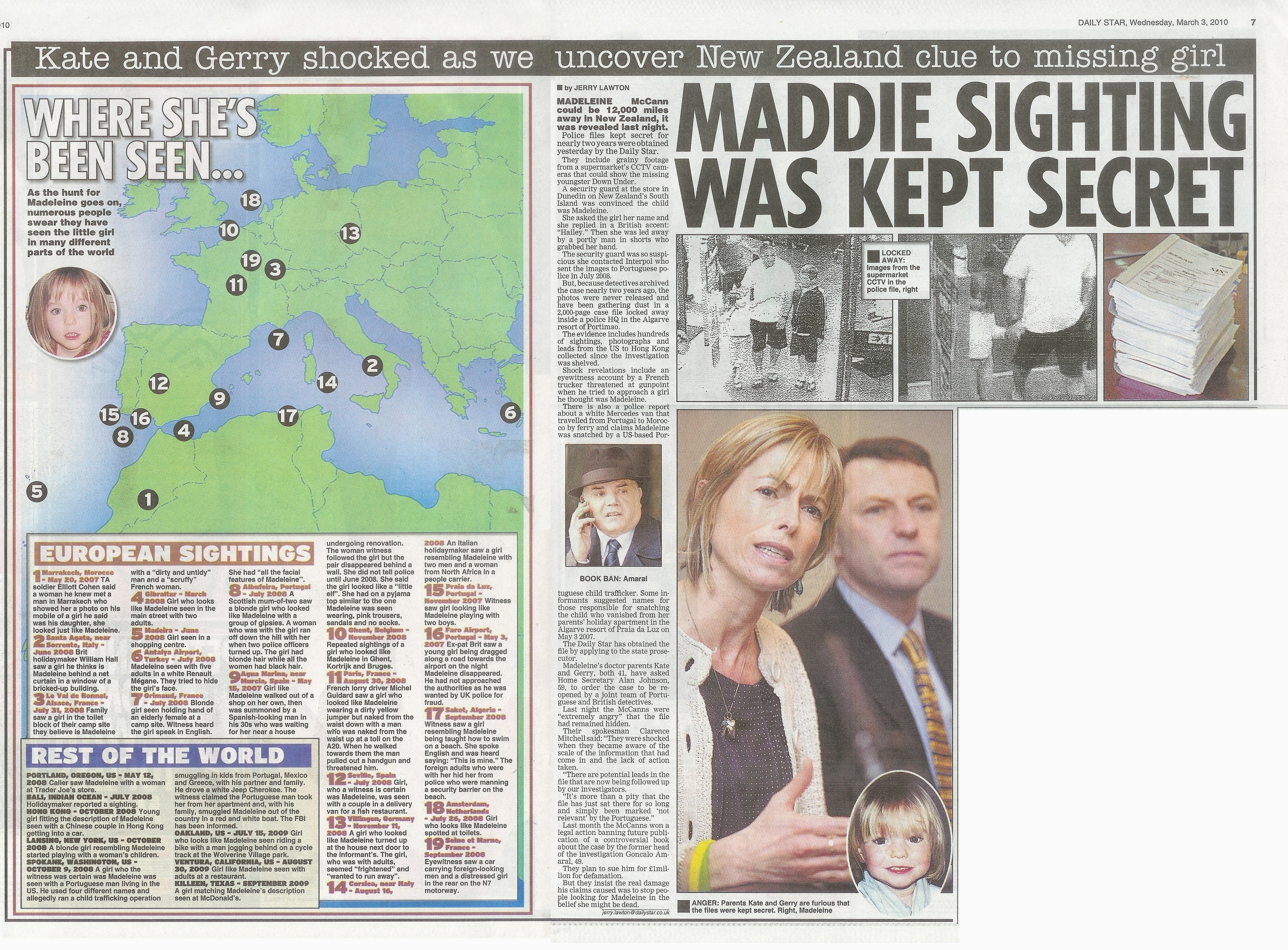 Secret files released yesterday show that Portuguese police dismissed dozens of potential sightings of Madeleine McCann.