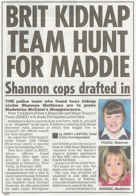 team who found hoax kidnap victim Shannon Matthews agreed to investigate Madeleine's disappearance. The team from West