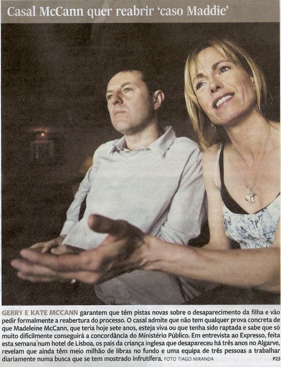The McCanns give interviews to BBC World Service, Portuguese newspaper Expresso, RTP (with Sandra Felgueiras)