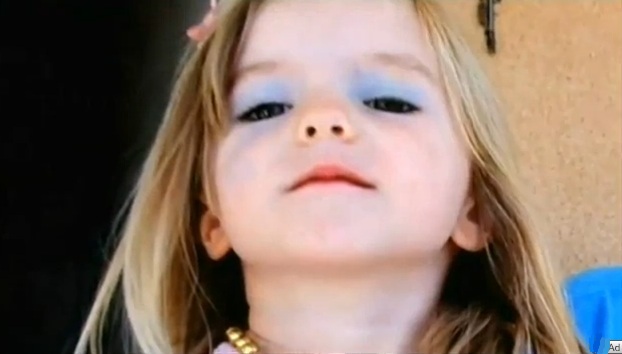 of the three-year-old wearing make-up and gazing into the camera. It is that image which, predictably, has featured in the