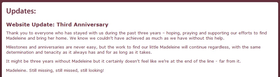 Note: This site does not belong to the McCanns. It belongs to Pamalam. If